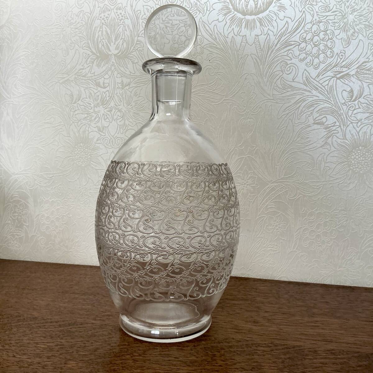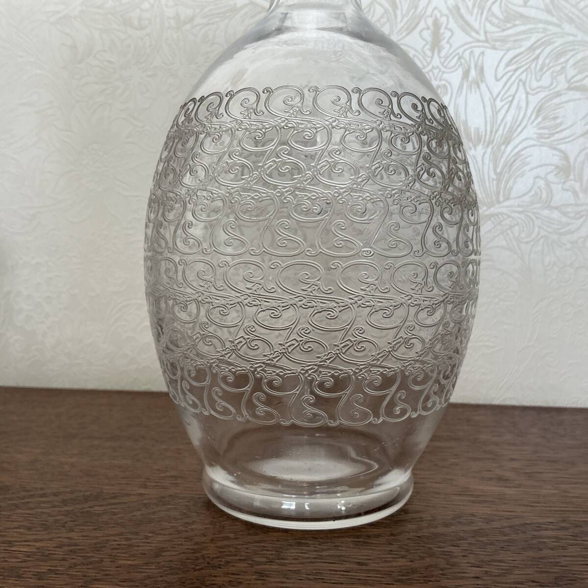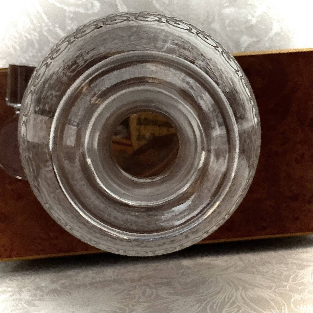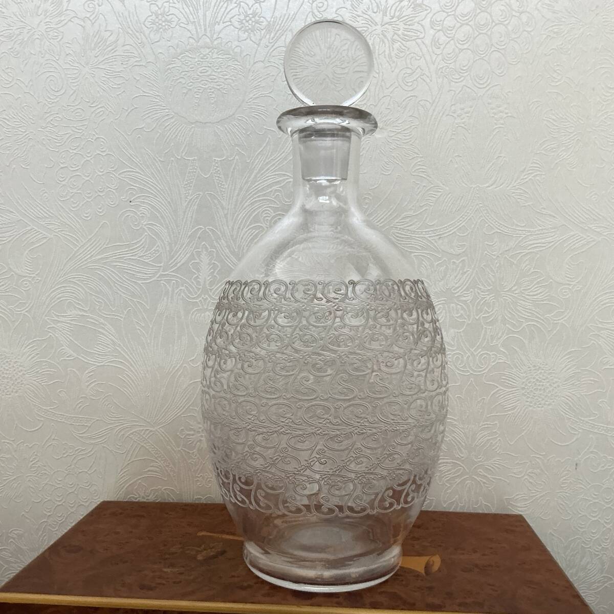 バカラ ローハン グヴィユー  デカンター の出品です。ローハンはバカラで製作されるグラスの中でも最も人気のあるモデルの一つで、胴廻り全体にバカラの代表的な装飾技法アシッド・エッチング(酸化腐食法)でS字型のアラベスク模様が繊細にグラヴィール描かれています。