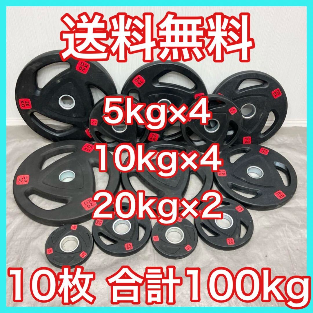 ■送料無料■10枚セット100kg バーベルプレート ウエイトプレート 新品 5kg×4 10kg×4 20kg×2
