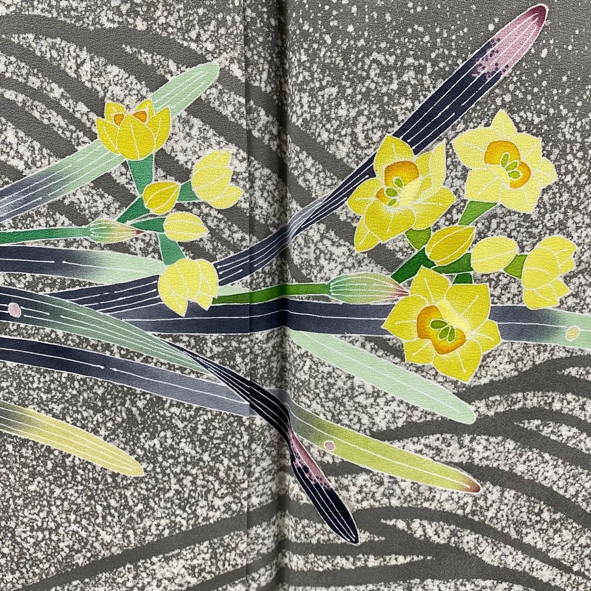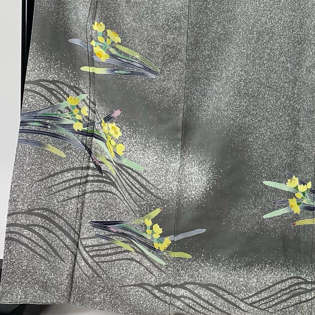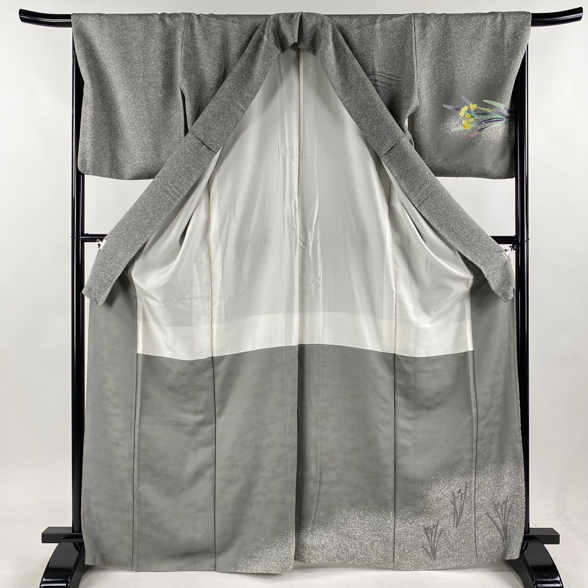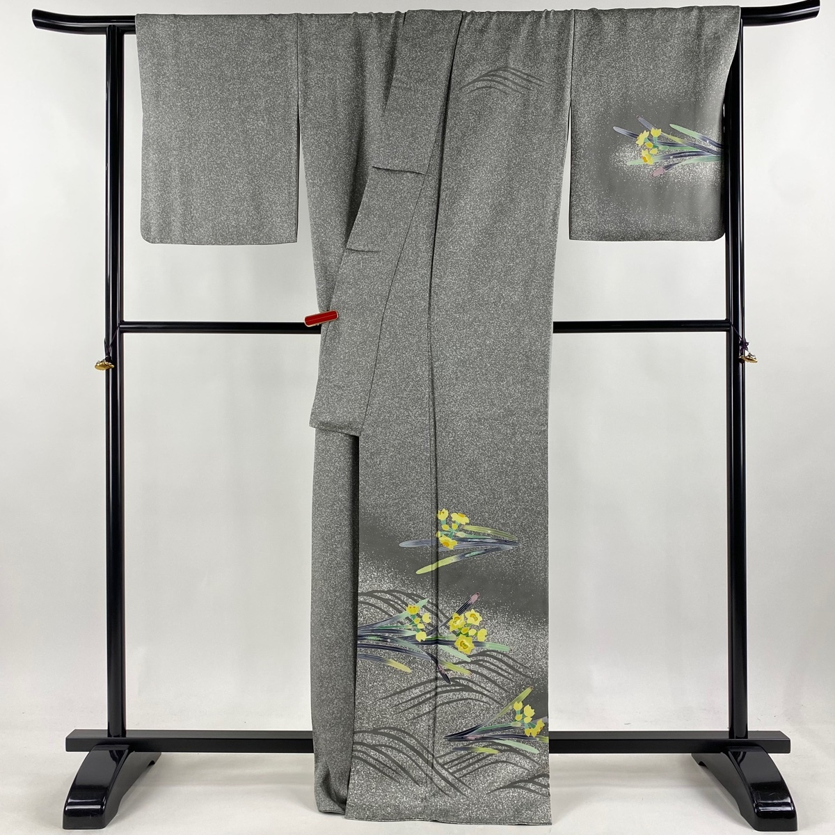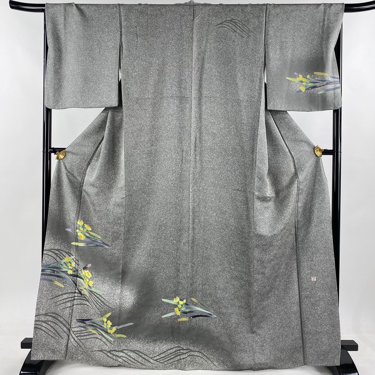 | 付下げ 逸品 羽田登 落款 草花 波 灰色 袷 身丈168.5 裄丈66 M 正絹 【中古】 |