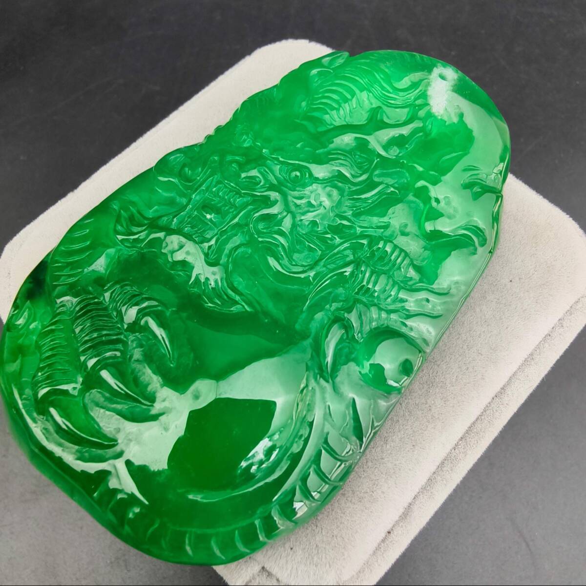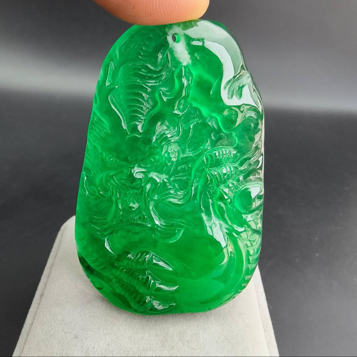 【超珍館蔵】翡翠製 細密彫 龍行天下玉牌ペンダント 根付 裝身具 古賞物 古董品 古美術品 時代物 旧家蔵出 稀少珍蔵品
