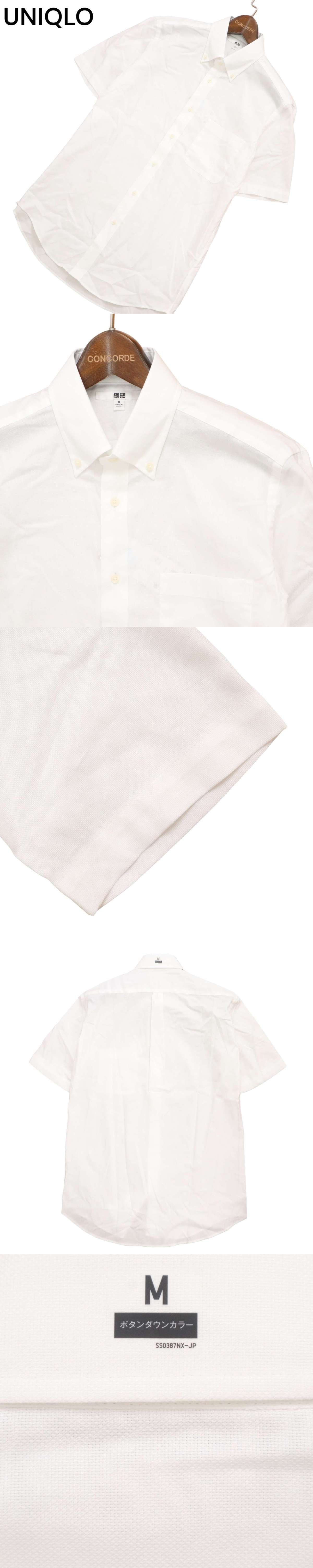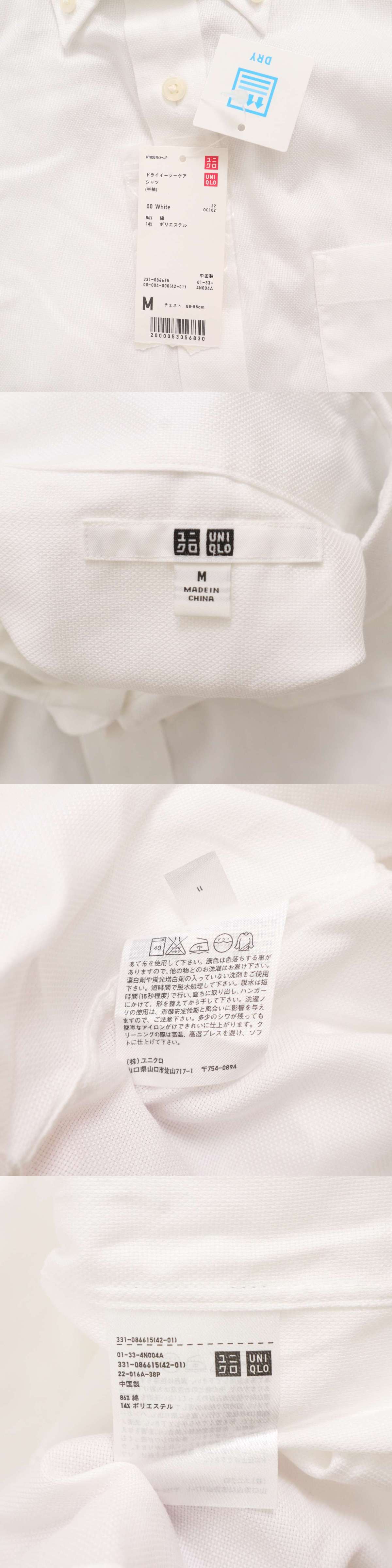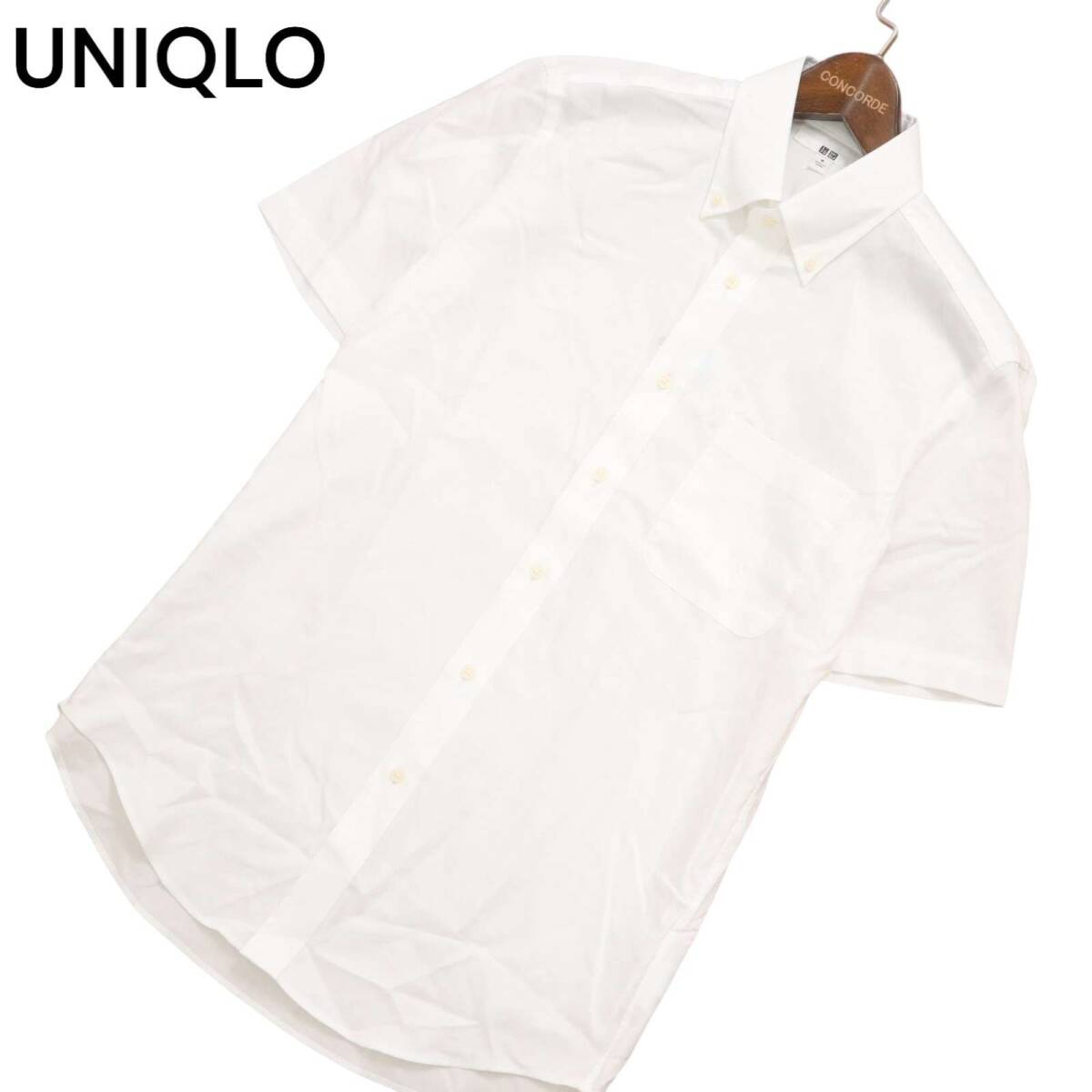 【新品 未使用】 UNIQLO ユニクロ 春夏★ 半袖 ドライ イージーケア ボタンダウン シャツ Sz.M メンズ 白