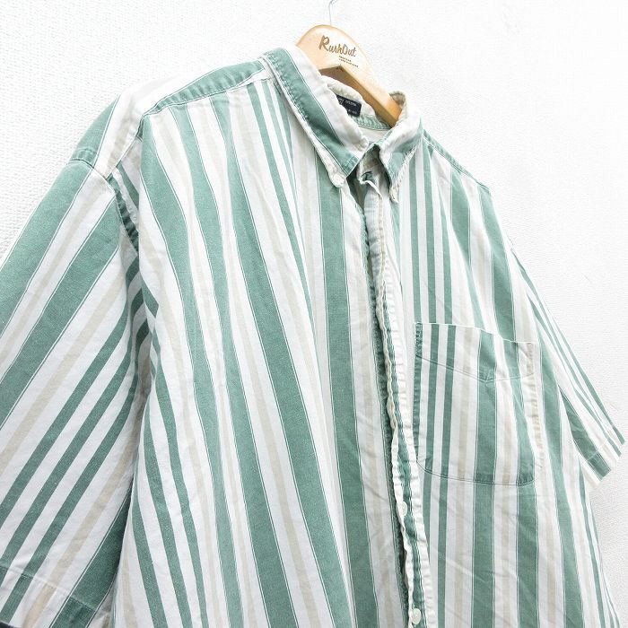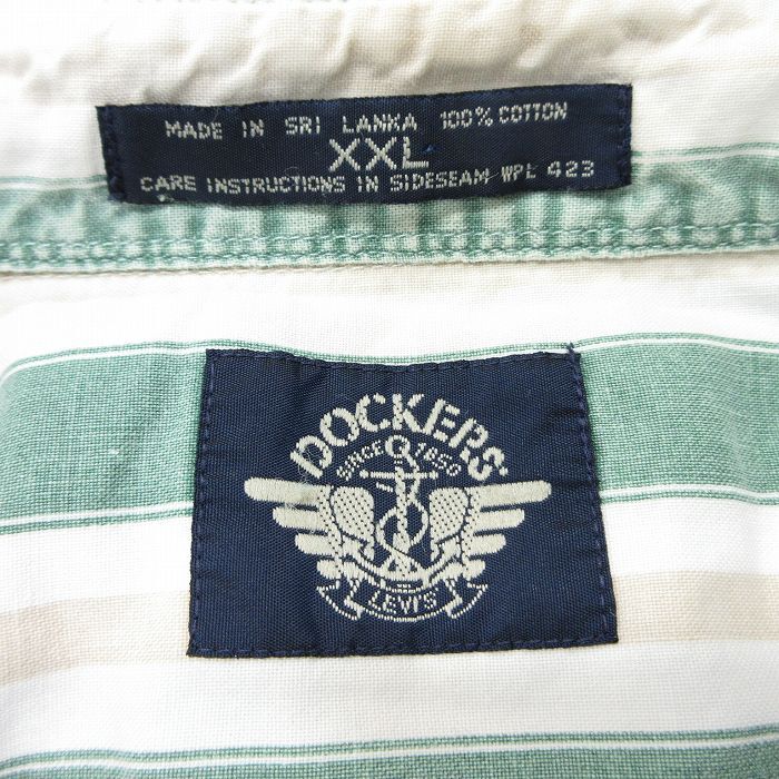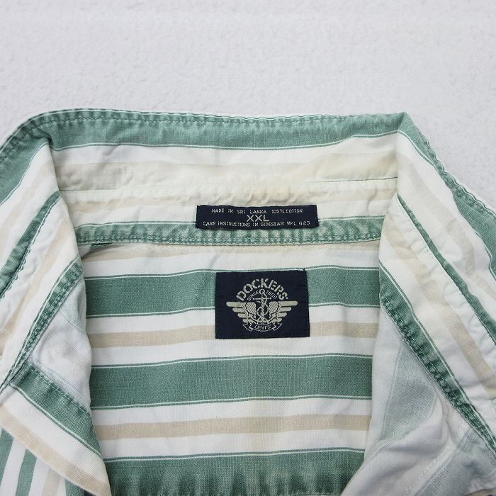 【商品名】 XL★古着 ドッカーズ 半袖 シャツ メンズ 90年代 90s 大きいサイズ コットン ボタンダウン 緑他 ストライプ【spe】