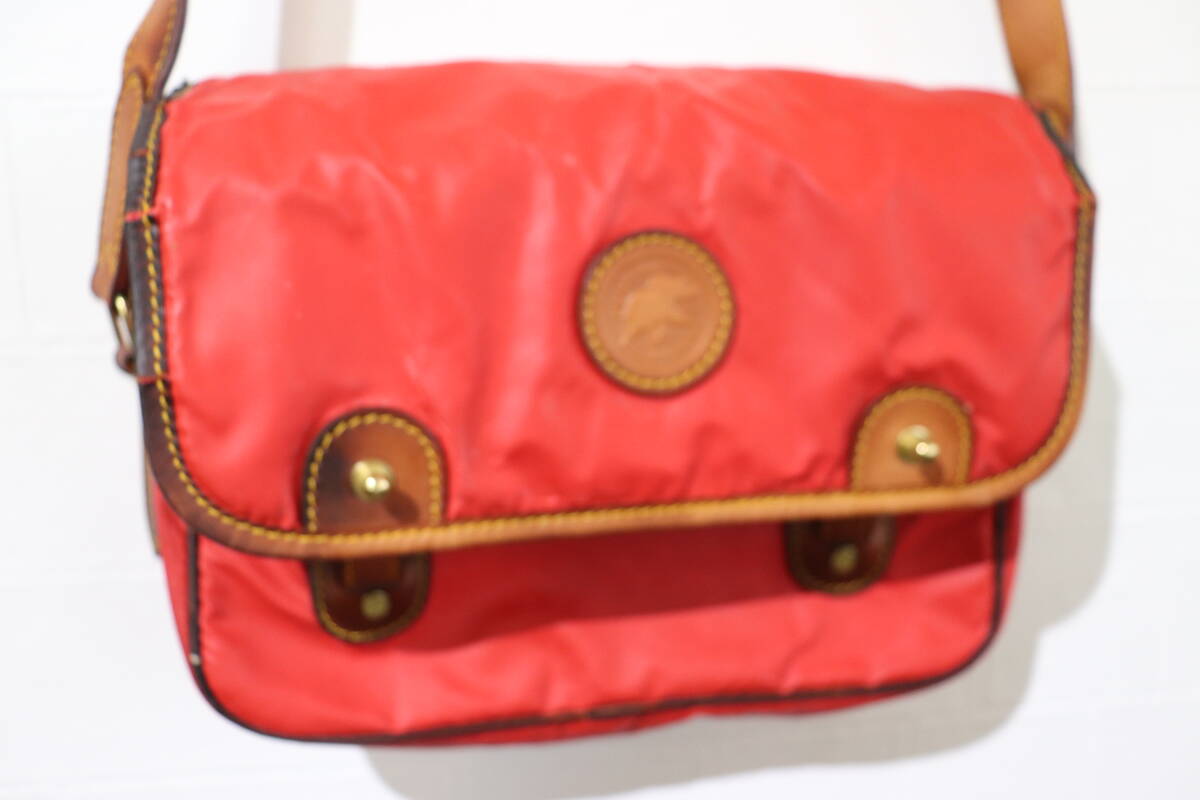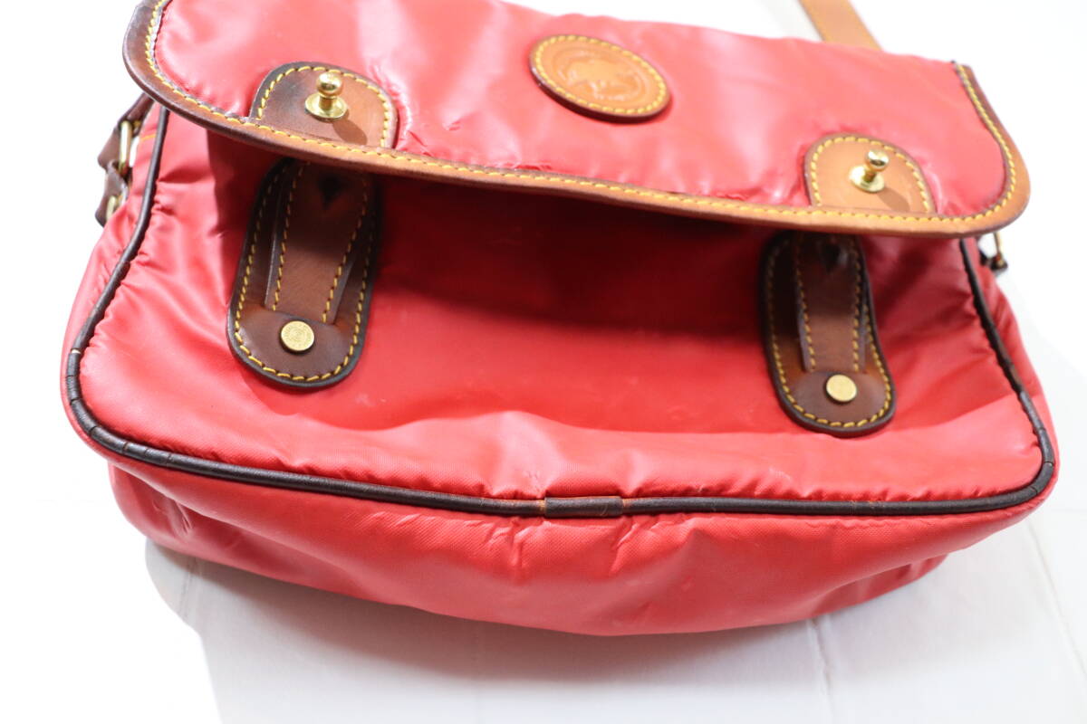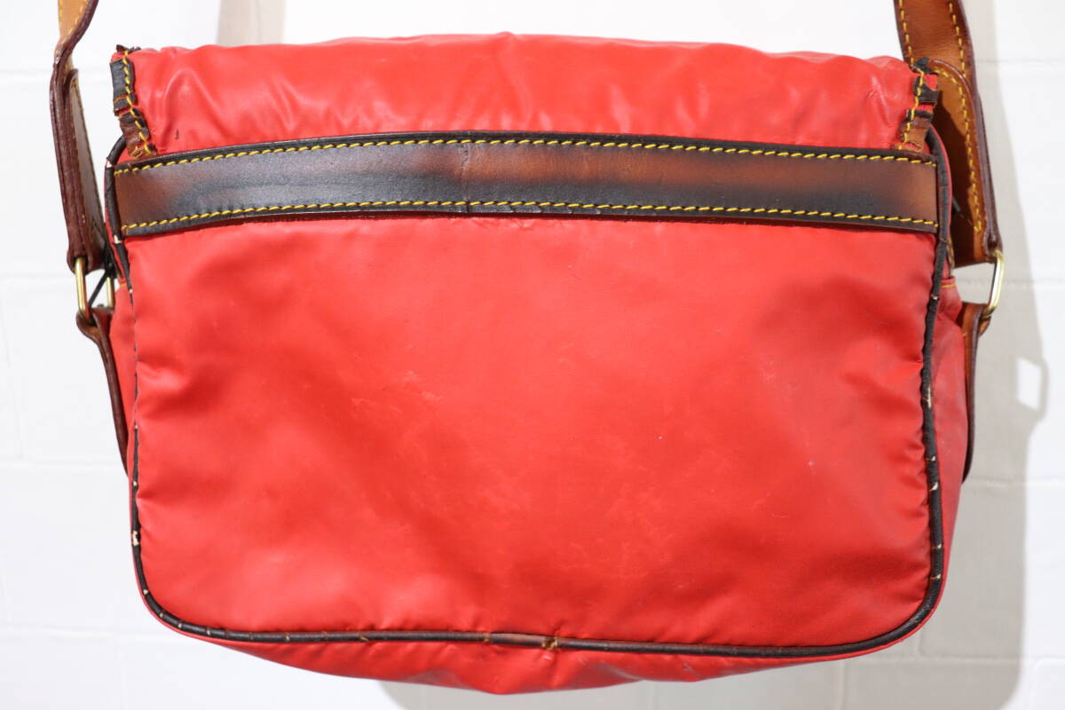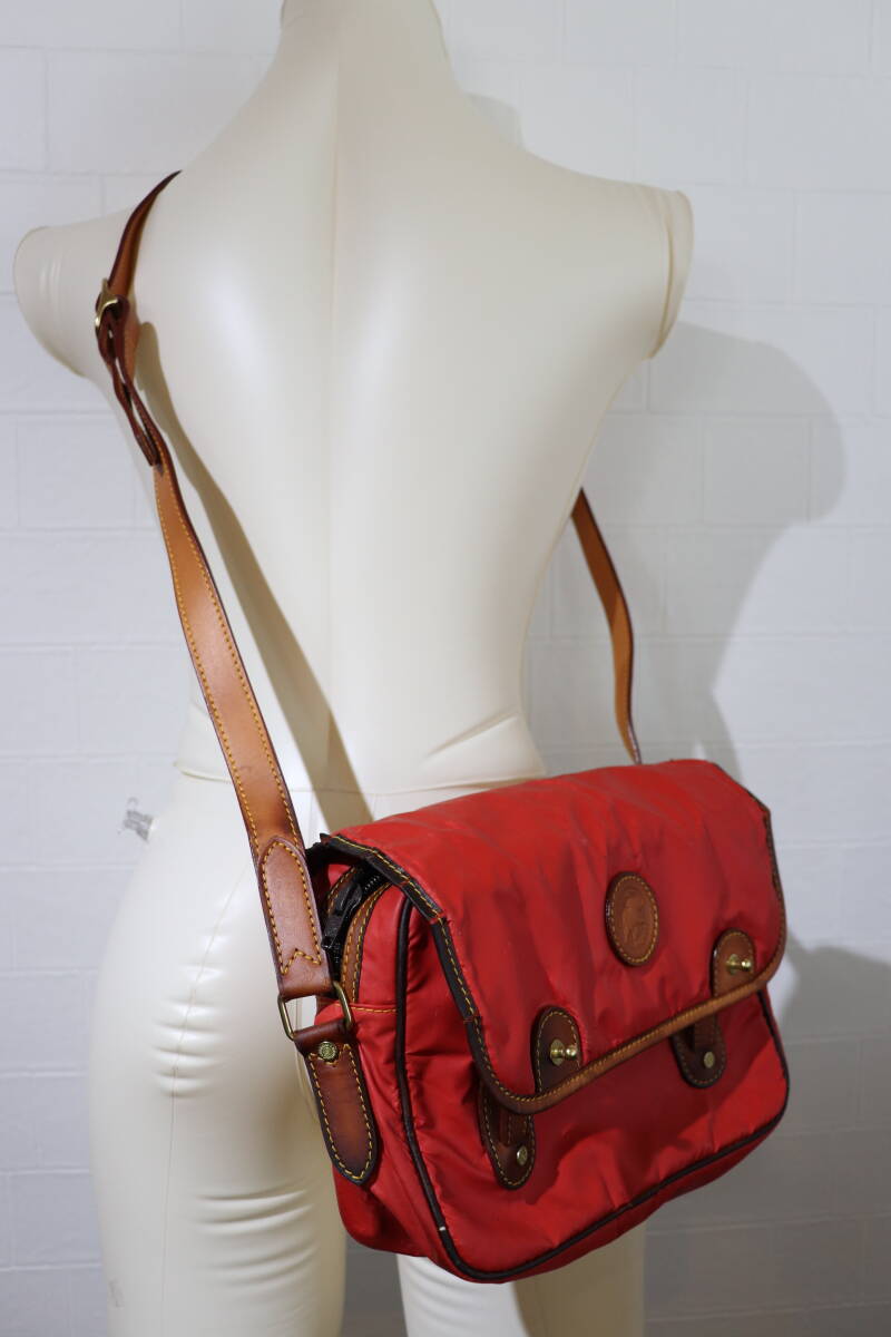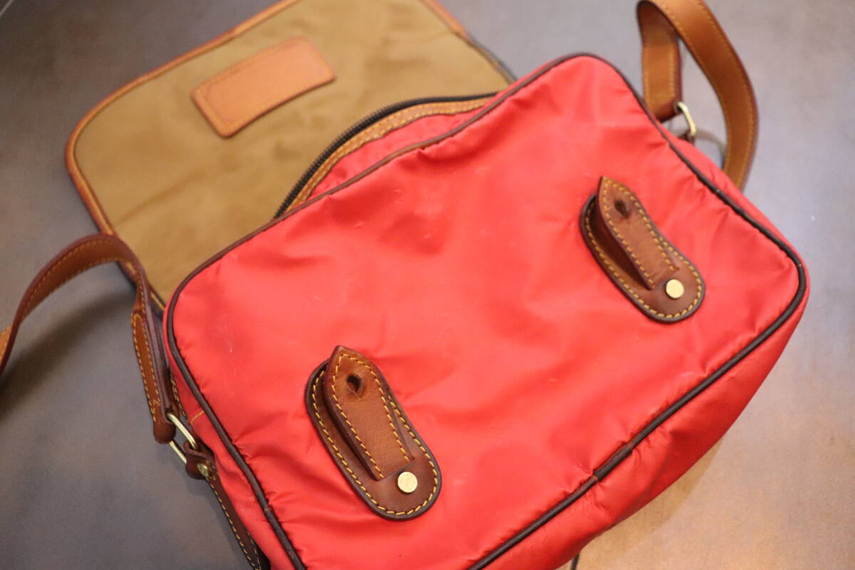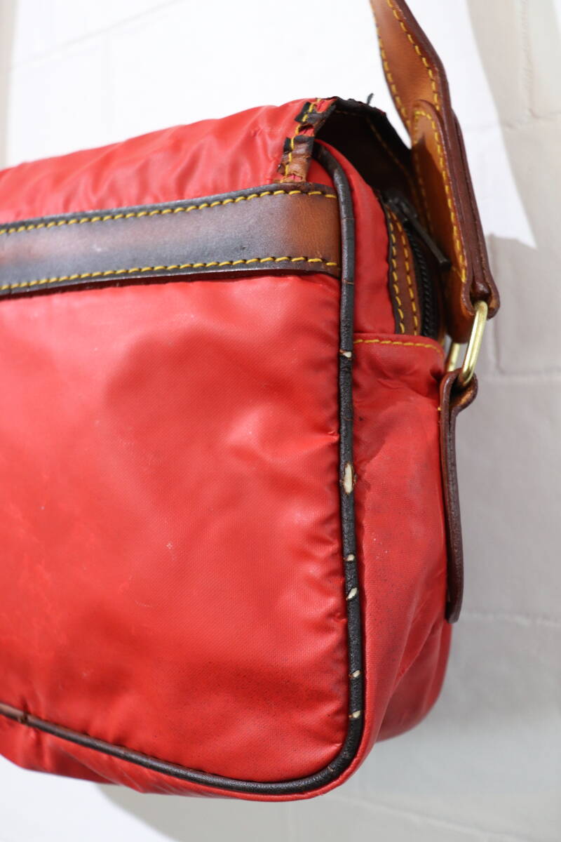即決 HUNTING WORLD ハンティングワールド イタリア製 ミニショルダーバッグ ポシェット サコッシュ ナイロン×レザー くすんだ赤