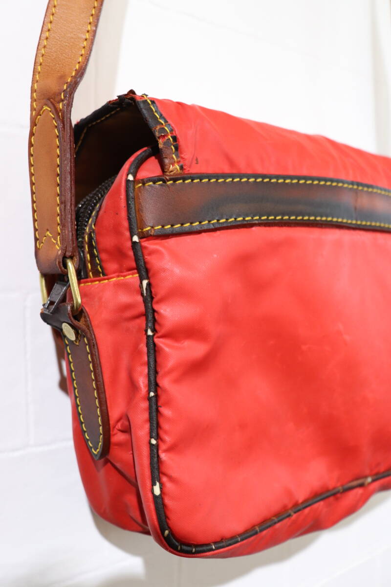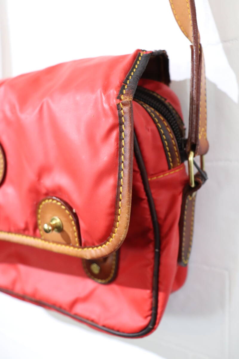 『HUNTING WORLD   レザー×ナイロン   ミニショルダーバッグ   くすんだレッド系』