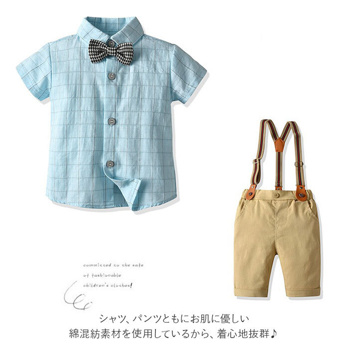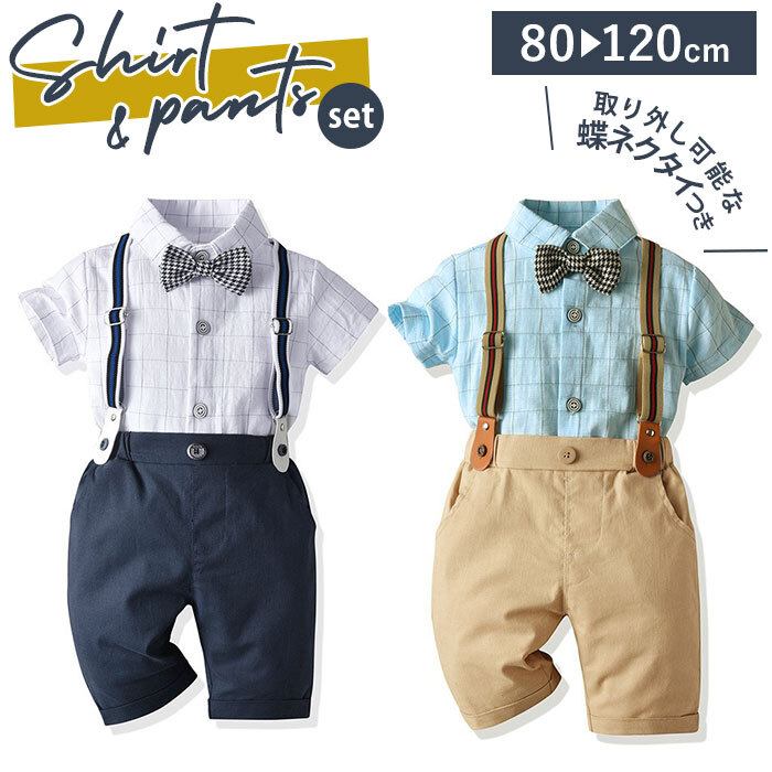 | 商品説明 | ・お子さまの晴れ舞台に、大活躍間違いなし♪フォーマル用のシャツとパンツセットが発売。 ・シャツ、パンツともにお肌に優しい綿混紡素材を使用しているから、着心地抜群♪ ・シャツは、夏でも着用できる半袖タイプ。首元の蝶ネクタイは、スナップボタンで簡単に取りはずしが可能。 ・パンツはウエストゴム仕様で、脱ぎ着が楽ちん。ボタンで着脱可能なサスペンダー付き。 ・セットで着るのはもちろん、単品使いもできちゃうからコーデの幅が広がる◎ 80cm~120cmまでの幅広いサイズ展開。結婚式やお呼ばれ、お誕生日会やお食い初めなど、ベビー&キッズのイベントにもぴったり♪ |