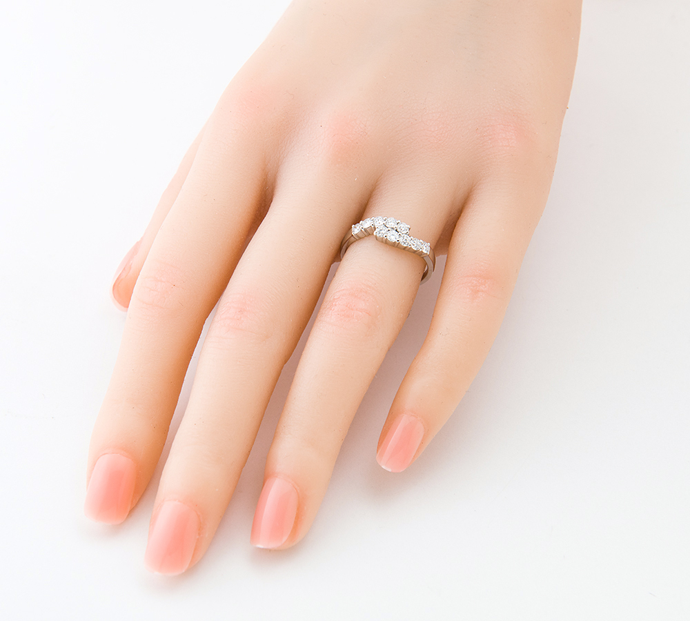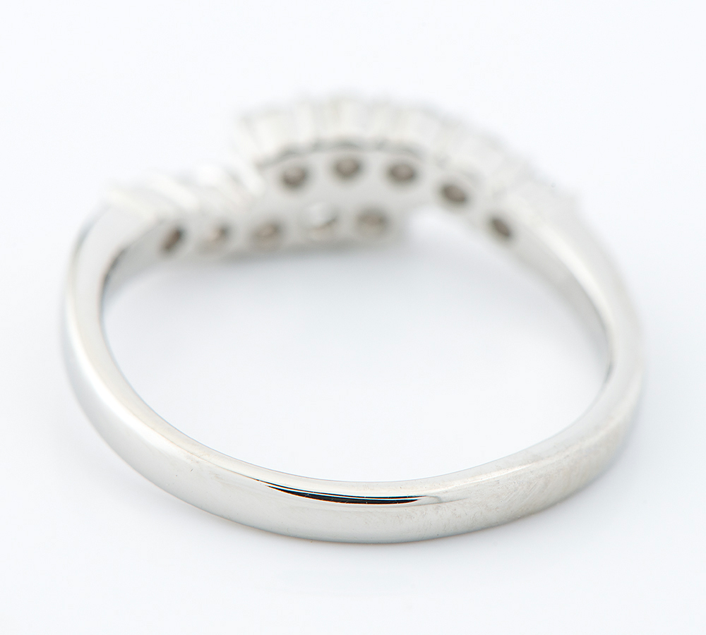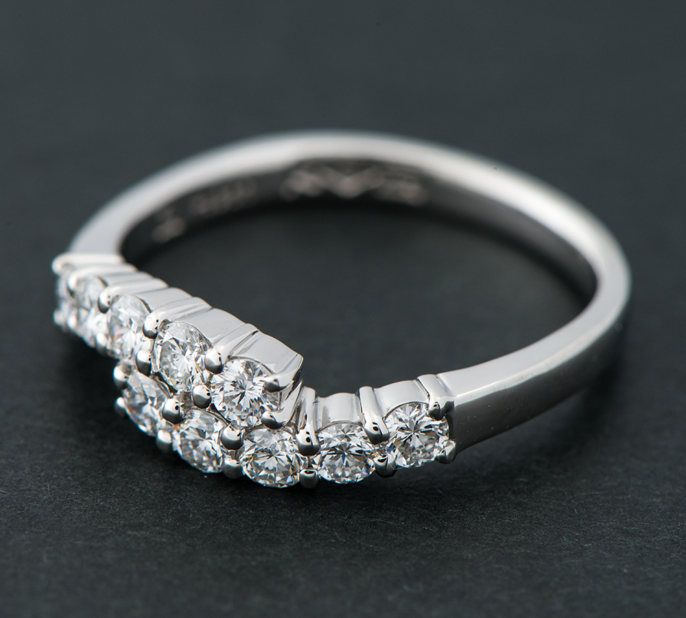 オランダ・アムステルダムでアイザック・ジョセフ・アッシャーが創設し、世界でただひとつ許された「ロイヤル」の称号を持つROYAL ASSCHER(ロイヤル・アッシャー)。緩やかな曲線の重なりが、エレガントな印象を与えるシンプルなプラチナリングです。計0.56ctの厳選された一石一石のダイヤモンドの輝きが、ダイレクトに伝わります。