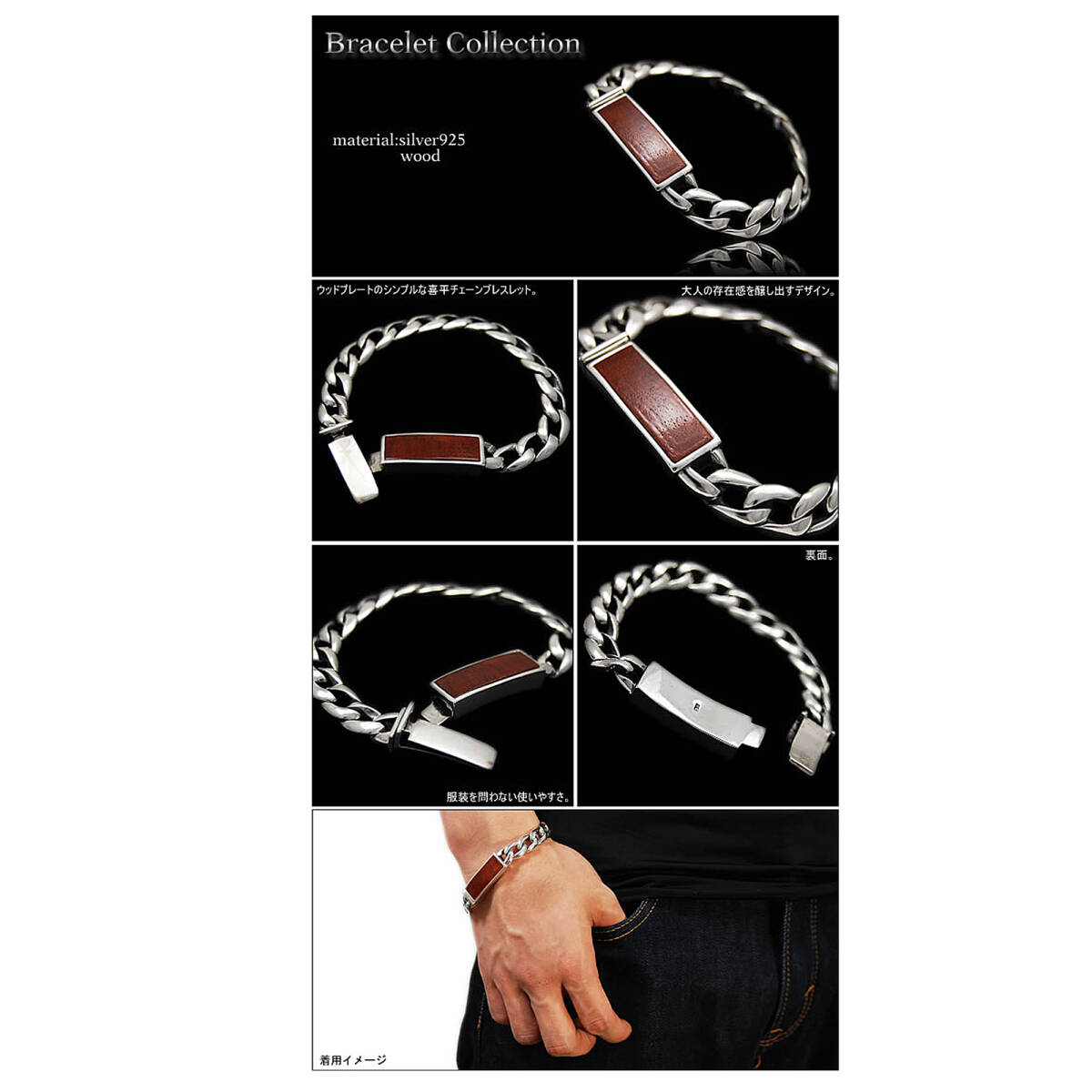 ウッドキューバチェーン925シルバーブレスレット925刻印ありGS-BL005