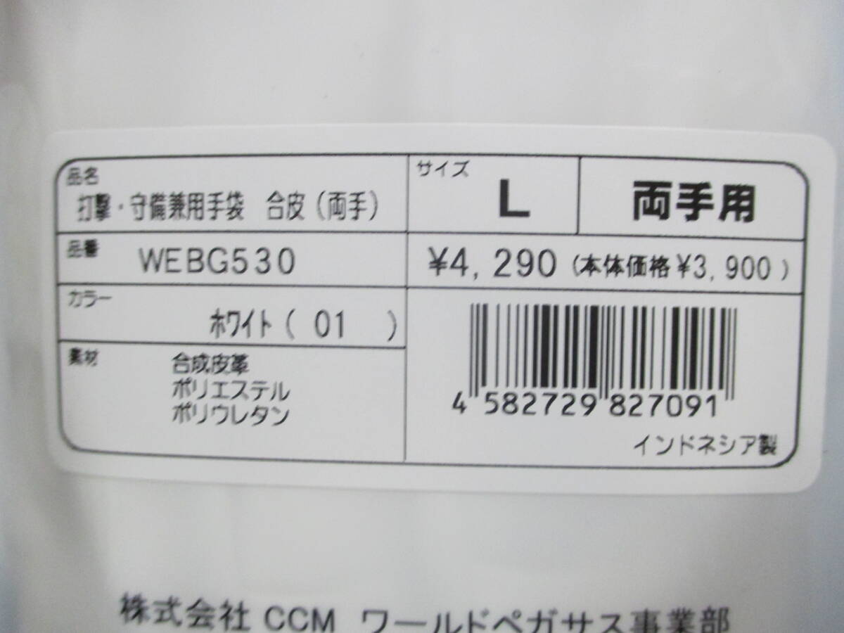 送料無料◆バッティング手袋◆ホワイト◆L◆ワールドペガサス◆即納◆洗える◆高校野球対応◆WEBG530◆野球◆ソフトボール ◆26-27◆新作