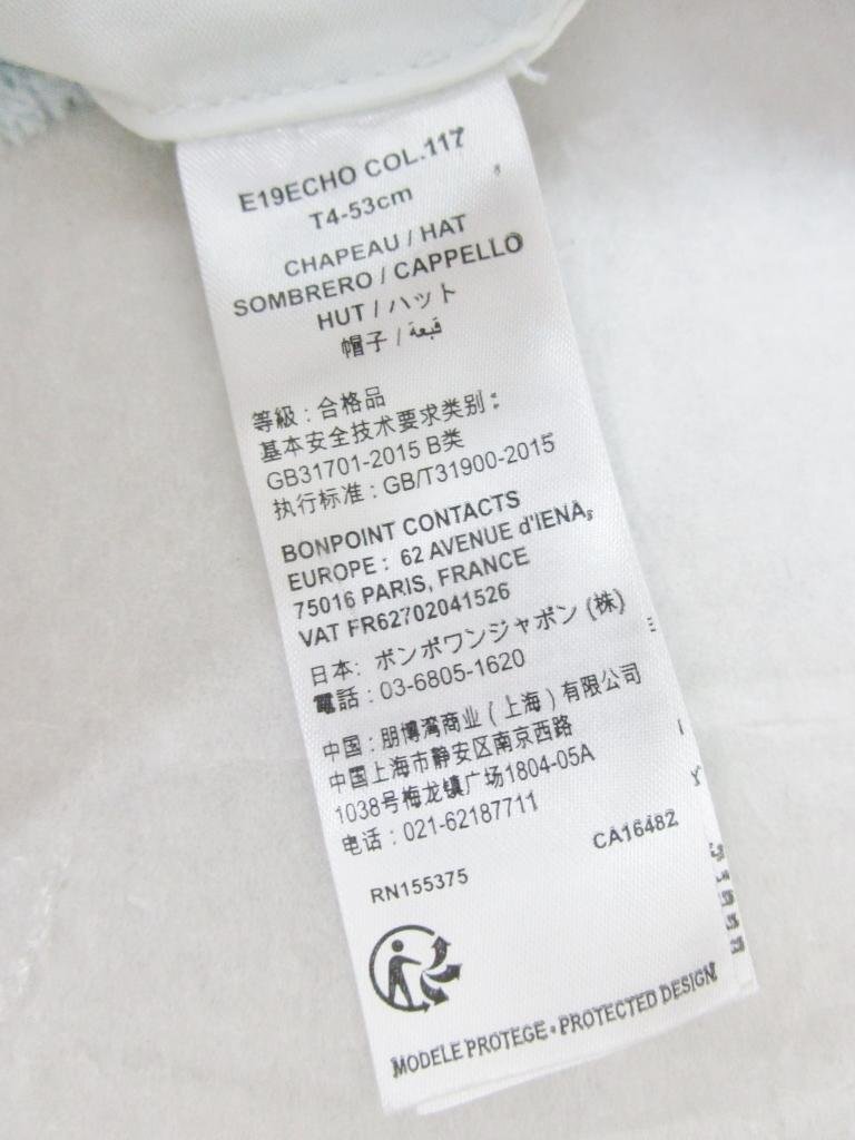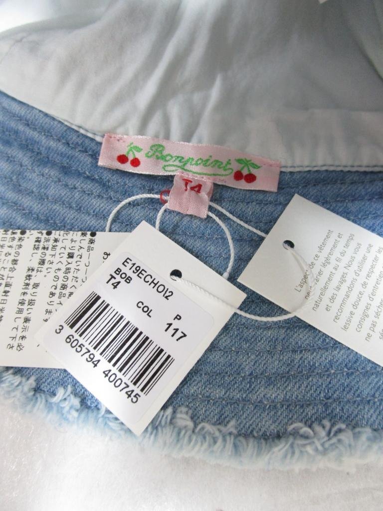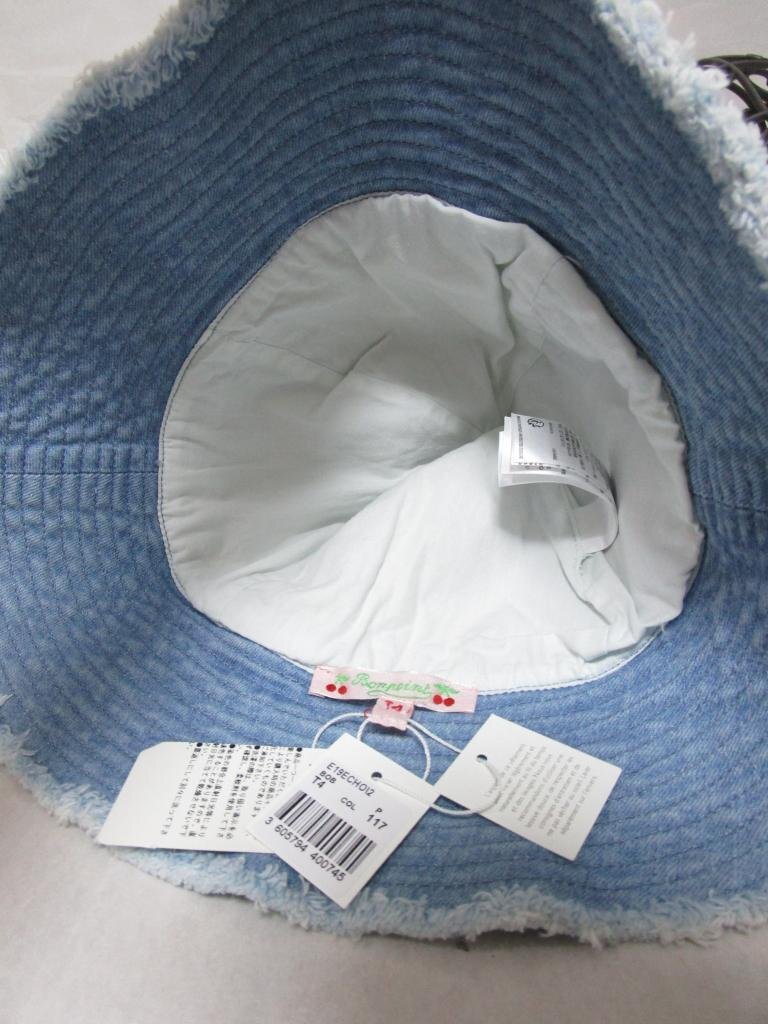 【送料込】 新品!Bonpoint ボンポワン 帽子 ハット ブルー 青 綿 ストレッチ デニム地 女の子用 未使用 タグ付き sizeT4 53cm/475859
