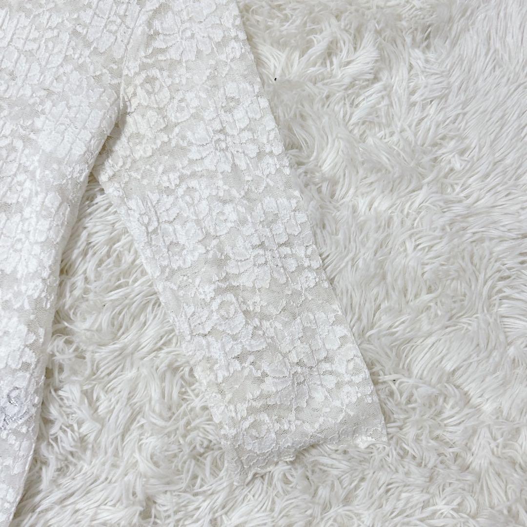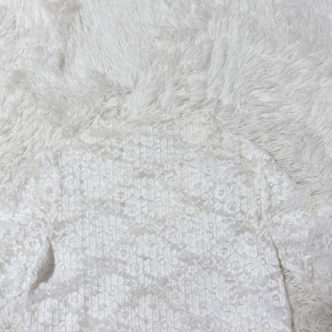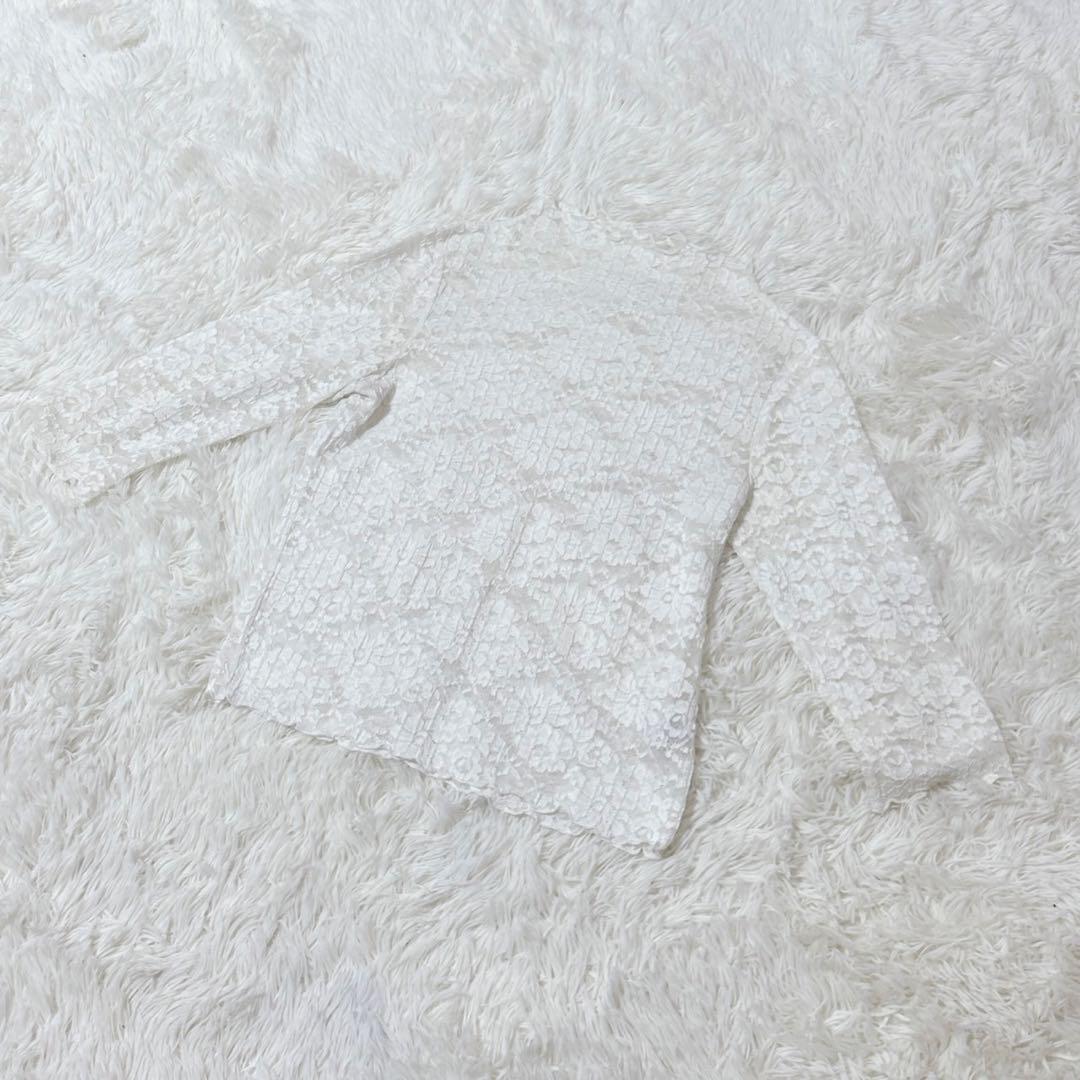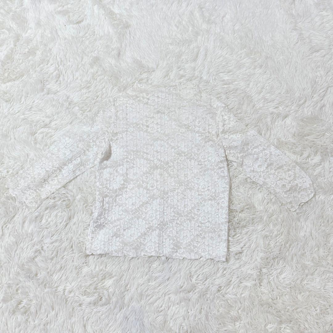 ホワイトのレース素材で、エレガントな印象の長袖トップスです。