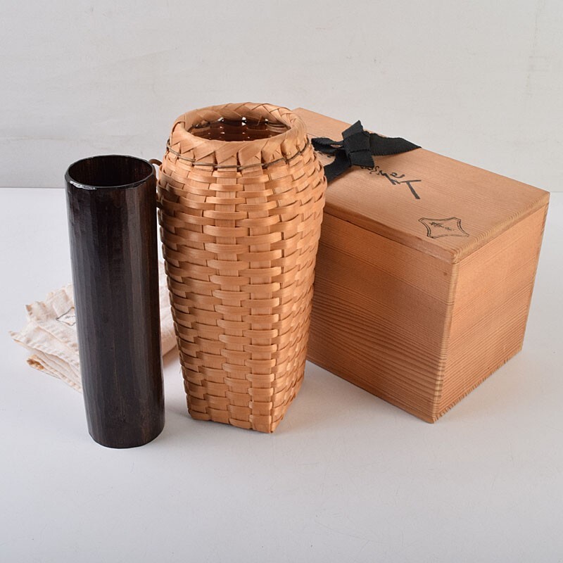 【茶道具 熊玄斎造 即中斎好 南紀檜籠掛花入 共布共箱 VQXU】