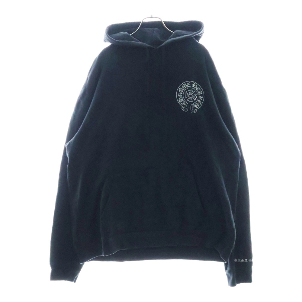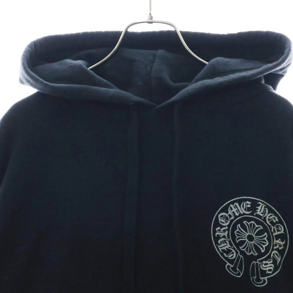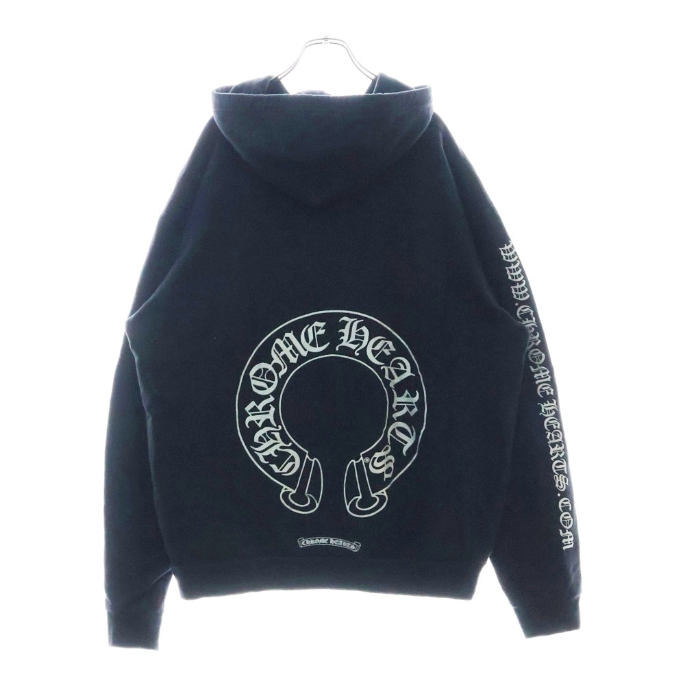 クロムハーツ WWW.CHROMEHEARTS.COM SILVER GLITTER HOODIE オンライン限定ホースシューバックプリントプルオーバーパーカー ブラック