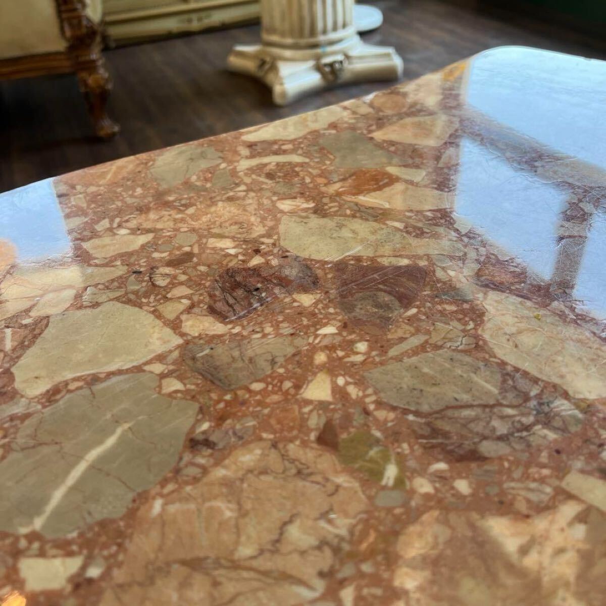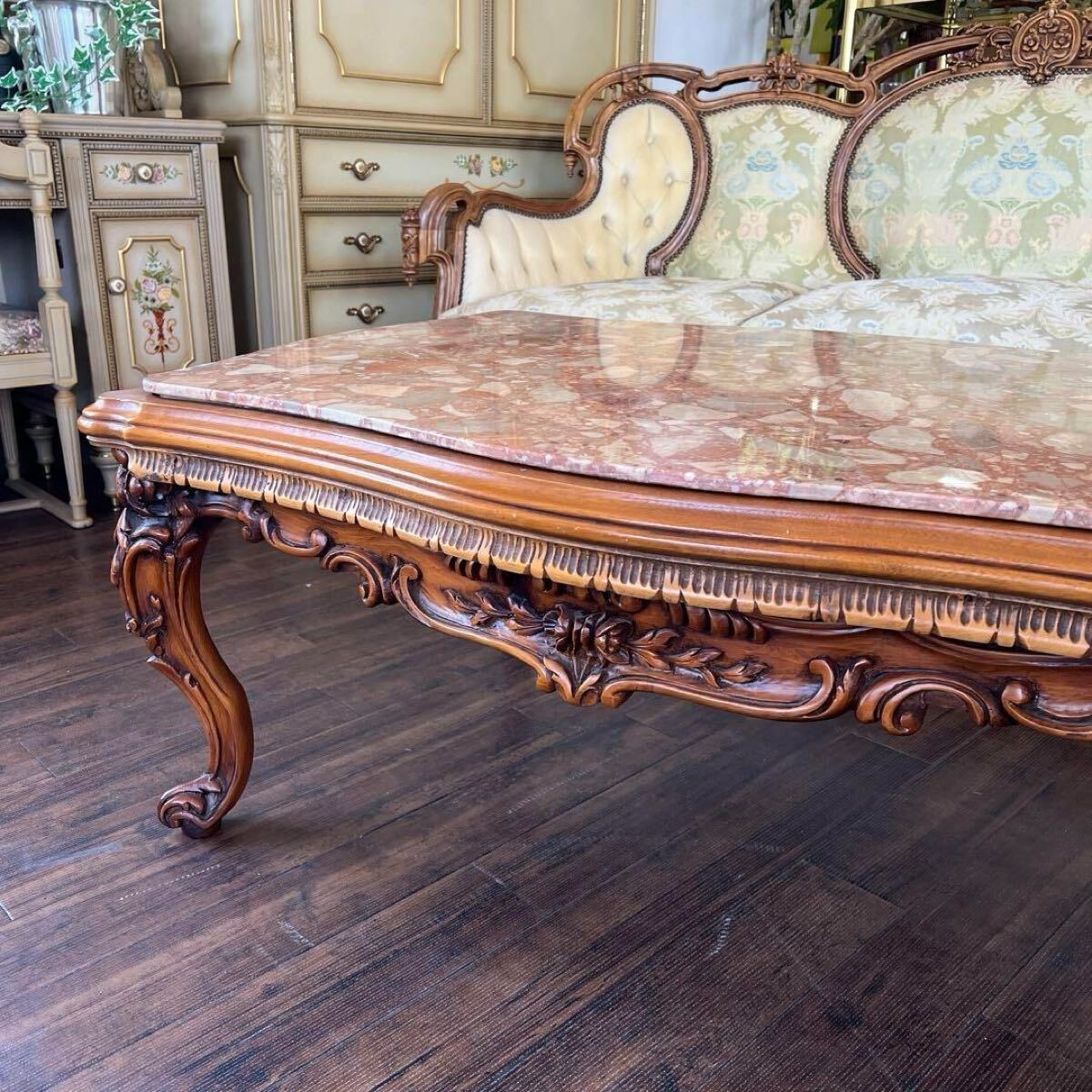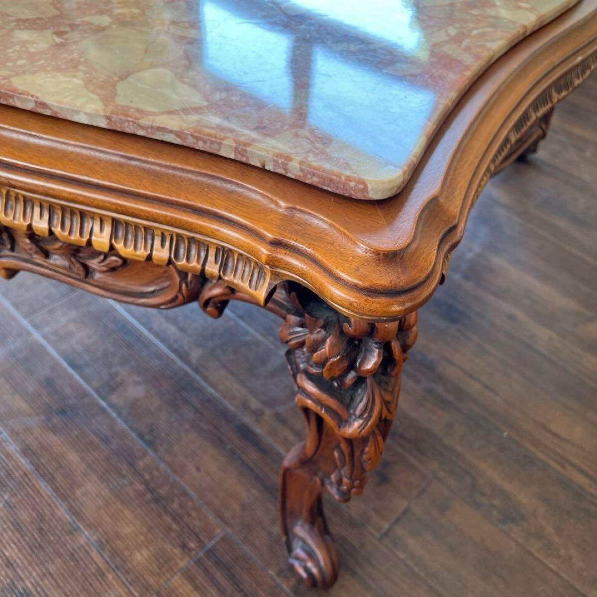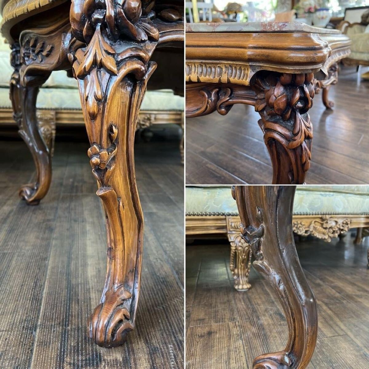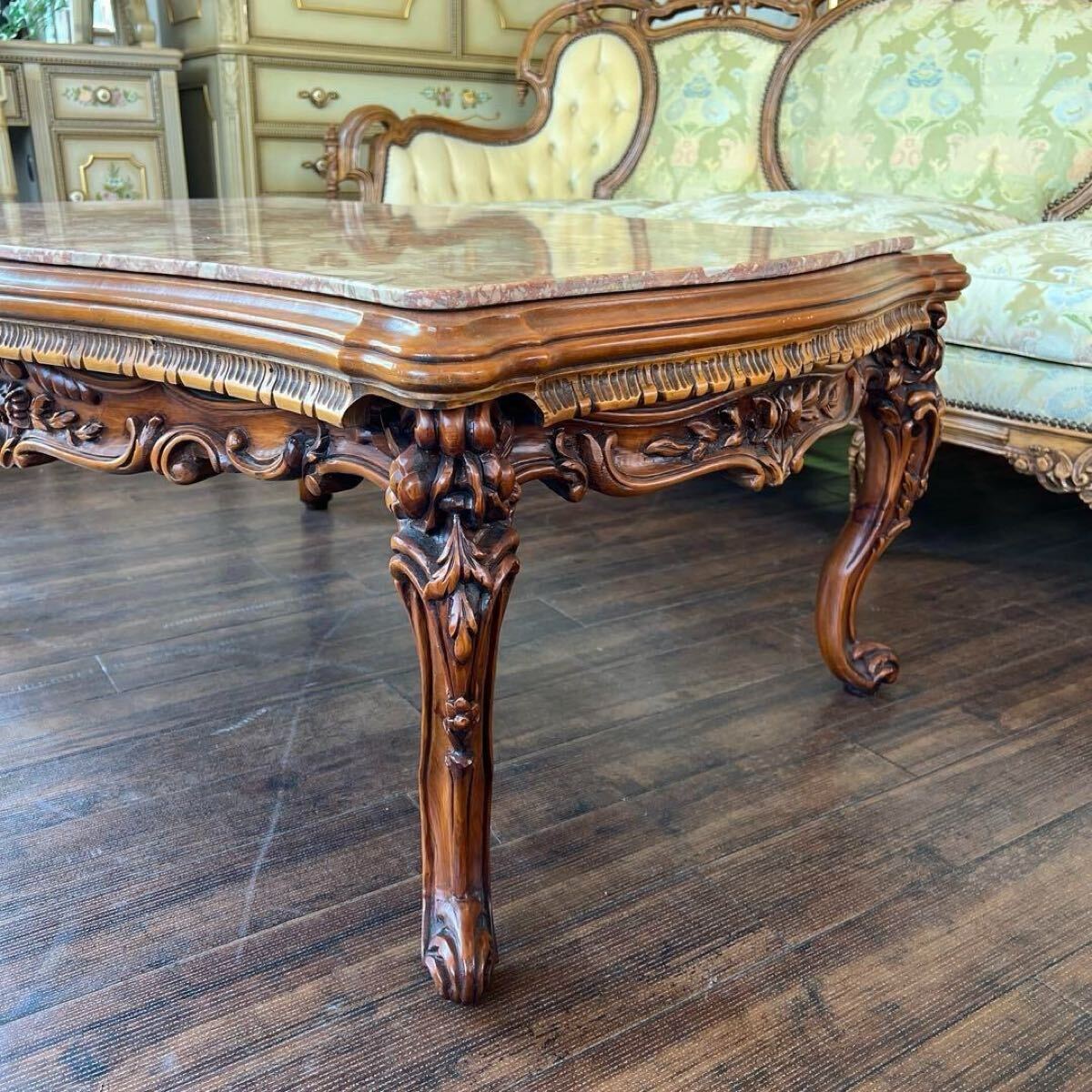 【 センターテーブル 】 ■サイズ(約) 幅 114.0㎝ 奥行 80.0㎝ 高さ 49.0㎝ ■状 態 経年による若干の小キズや汚れがあります。 天板に擦れキズが細かい見られます。 脚の1本に折れ補修跡があります。(画像参照) 詳細は写真でご確認ください。 ※神経質な方・完璧をお求めの方はご購入をお控えください。 詳細は写真を参考の上、ご入札をお願い致します。 商品写真に関しまして、PC環境や撮影状況等により 色合いが実物と若干異なる場合がございます。 また、サイズに関しましても若干の誤差が生じる場合がございます。 ご理解、ご了承の上、ご入札をお願い致します。 下記の注意事項をよくご確認の上、ご入札をお願い致します。 金額の入力ミスによる入札金額の変更や入札取消はできませんのでご了承下さいませ。 |