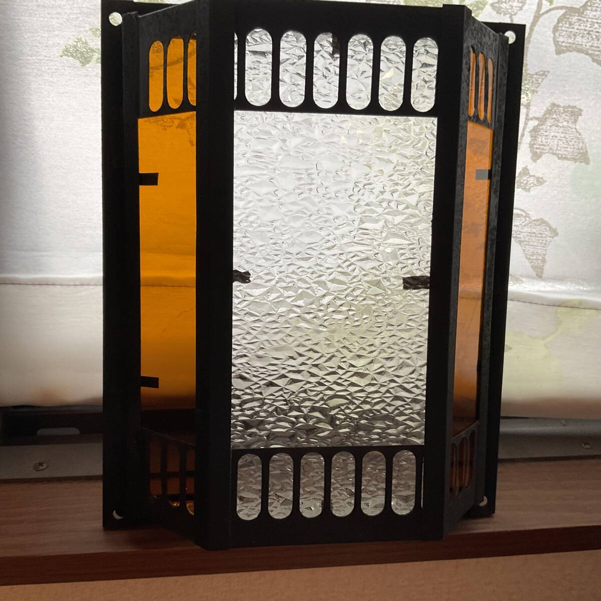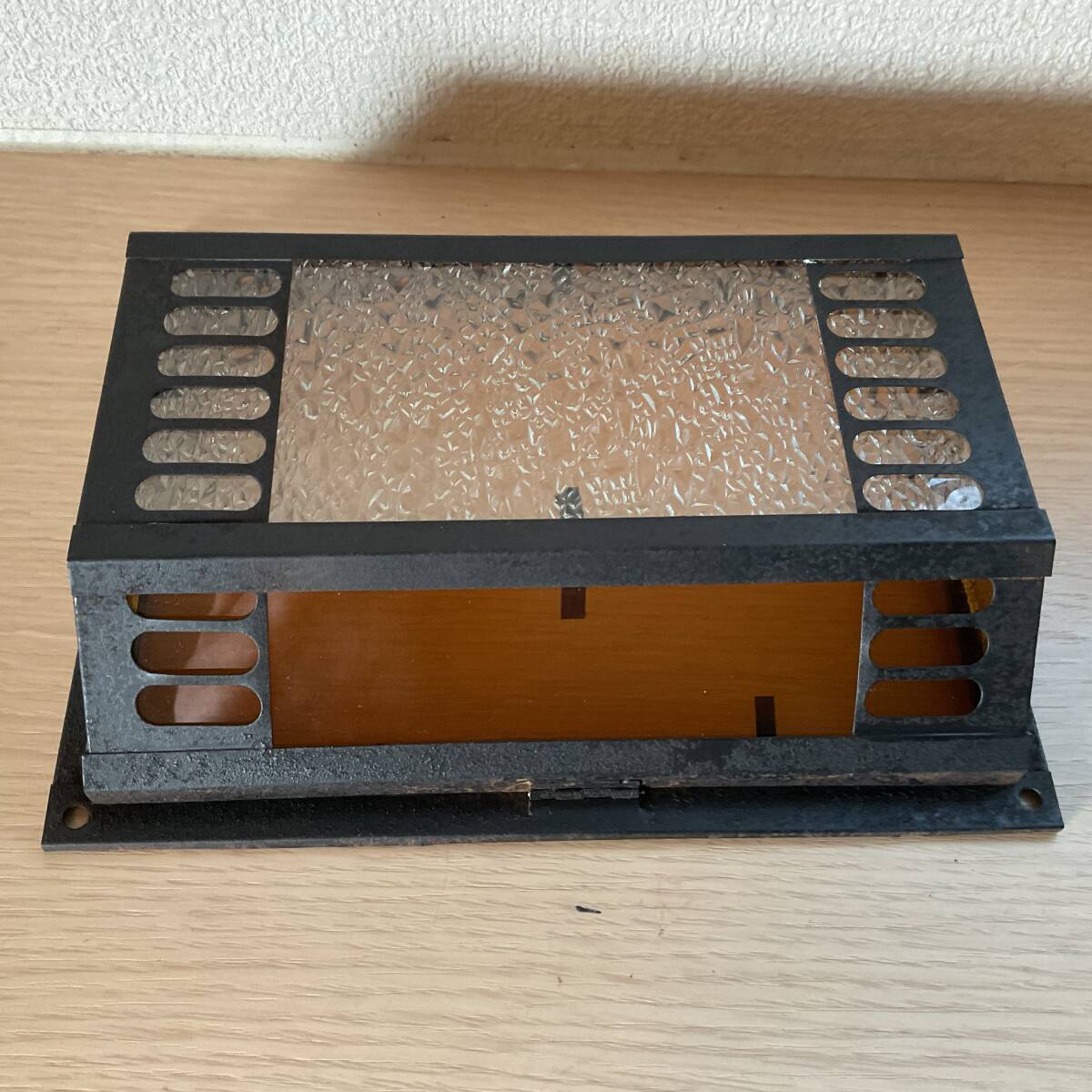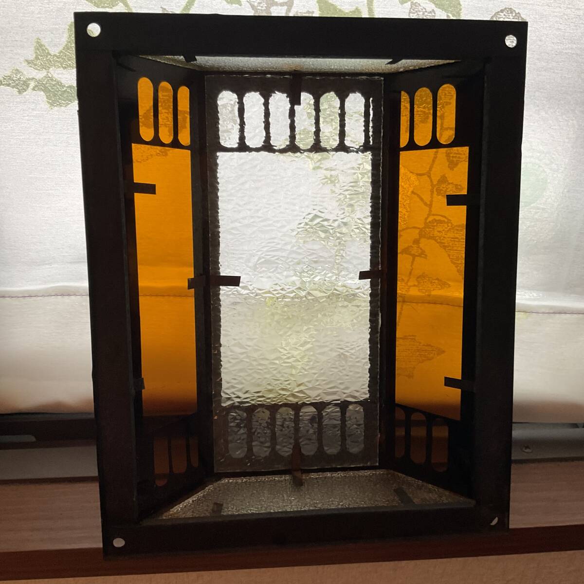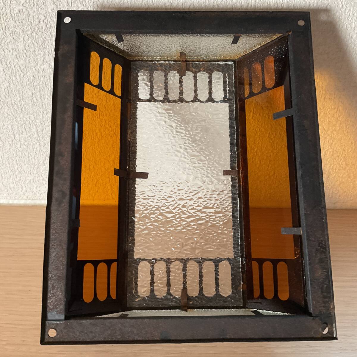 即決【大正浪漫びいどろ屋】アンバー平板ガラス入り壁灯カバー 黄色 アンティーク シェード リフォーム 古民家 カフェ