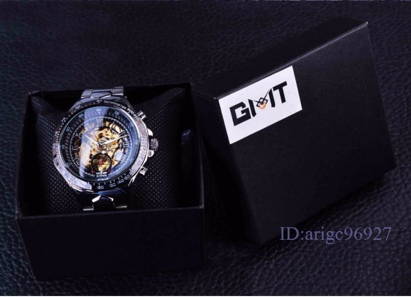 男性腕時計 ケース付き 44mm 機械式 自動巻き メンズウォッチ 文字盤 スケルトン 夜光 ステンレス 紳士 ファション