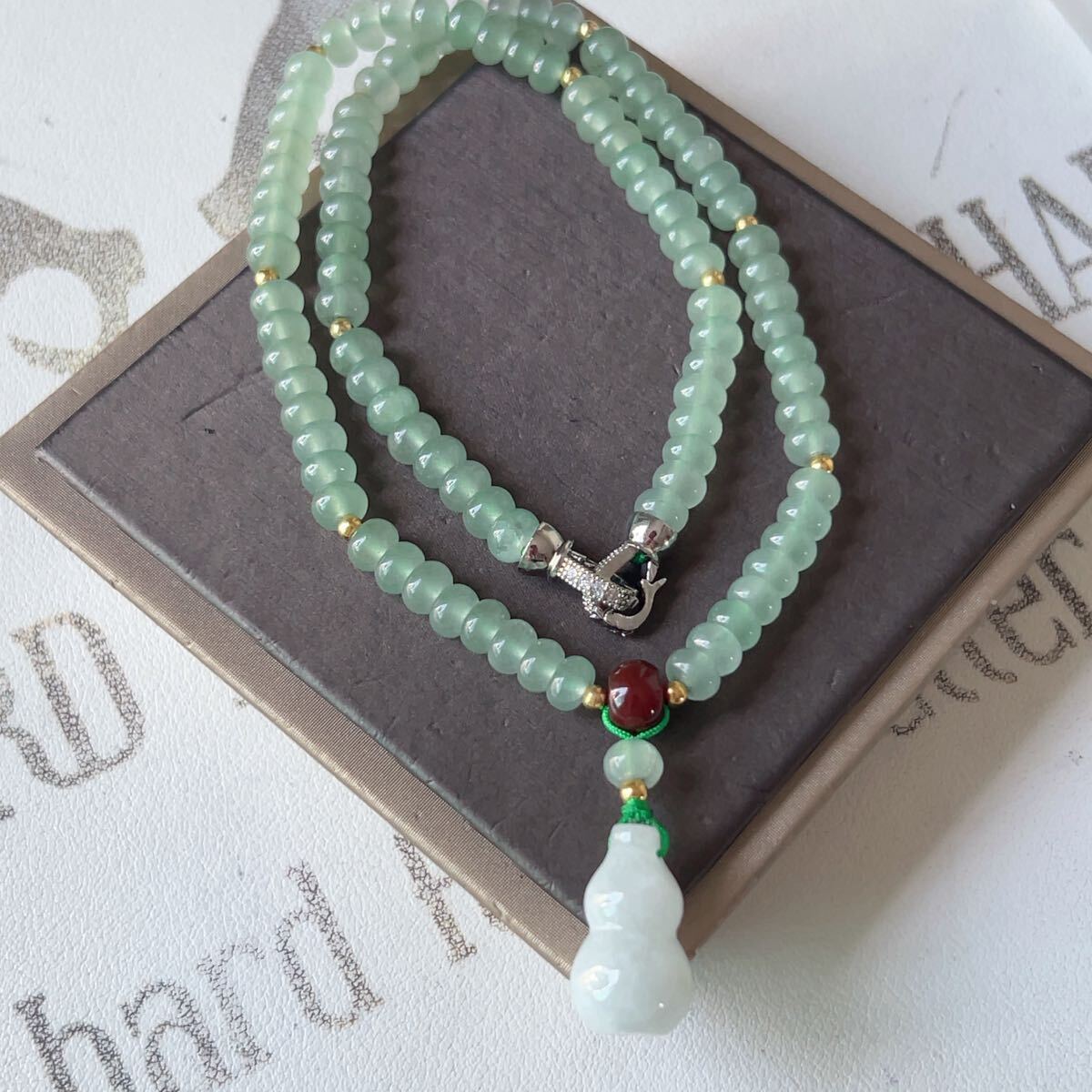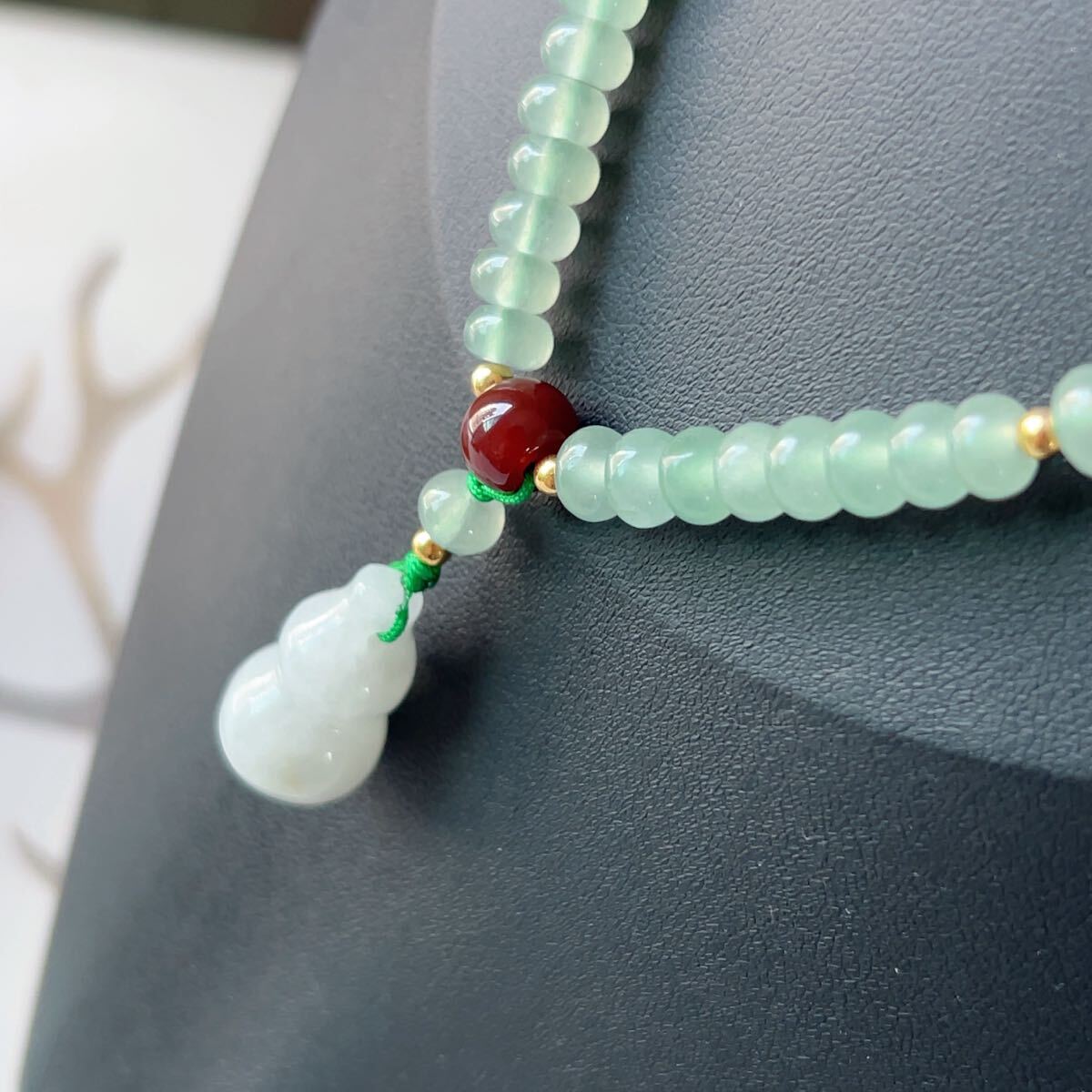 ◇東陵玉+本翡翠(瓢箪形)+赤瑪瑙◇ネックレス◇ペンダント◇パワーストーン◇天然石◇ヒスイ◇巾着袋付き◇プレゼントにも 030P6257