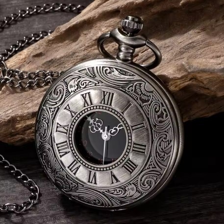 新品、未使用品です。 チェーン付きのお洒落な懐中時計です。 クオーツです。 文字盤の直径は4センチ、鎖の長さは約80センチです。竜頭は引いた状態にしておりますので、回して時間を合わせてください。竜頭を押し込むと、秒針が動き始めます。