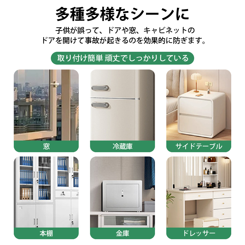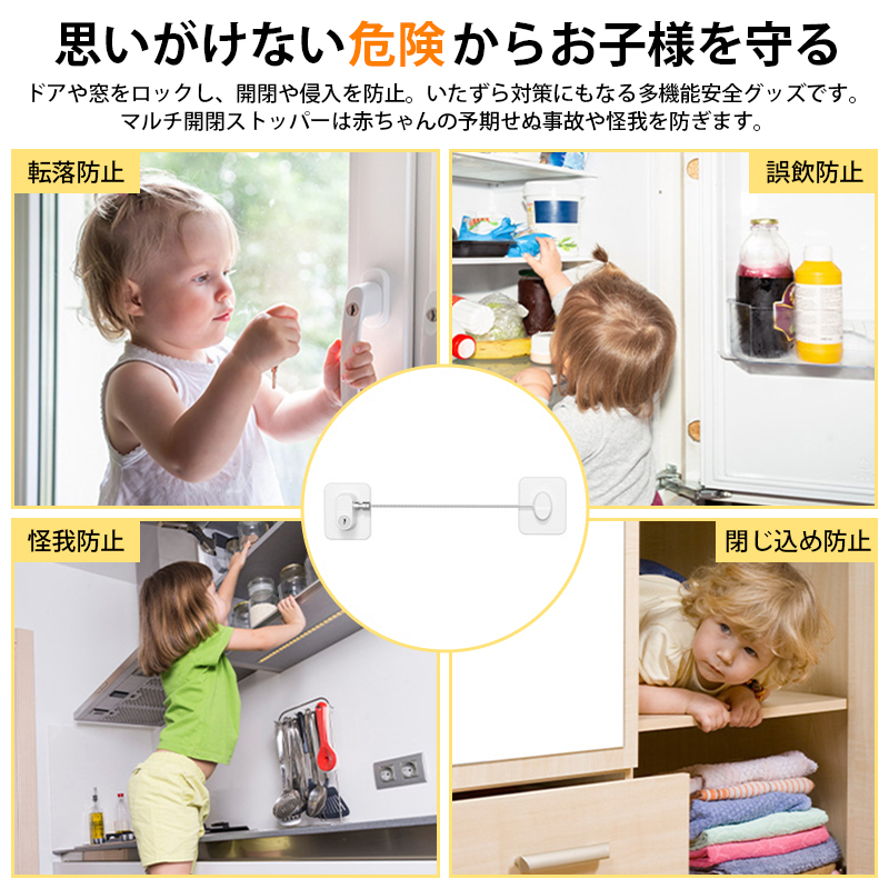 冷蔵庫や窓、ドア、棚など幅広い場所に使える、鍵付きドアストッパー! |