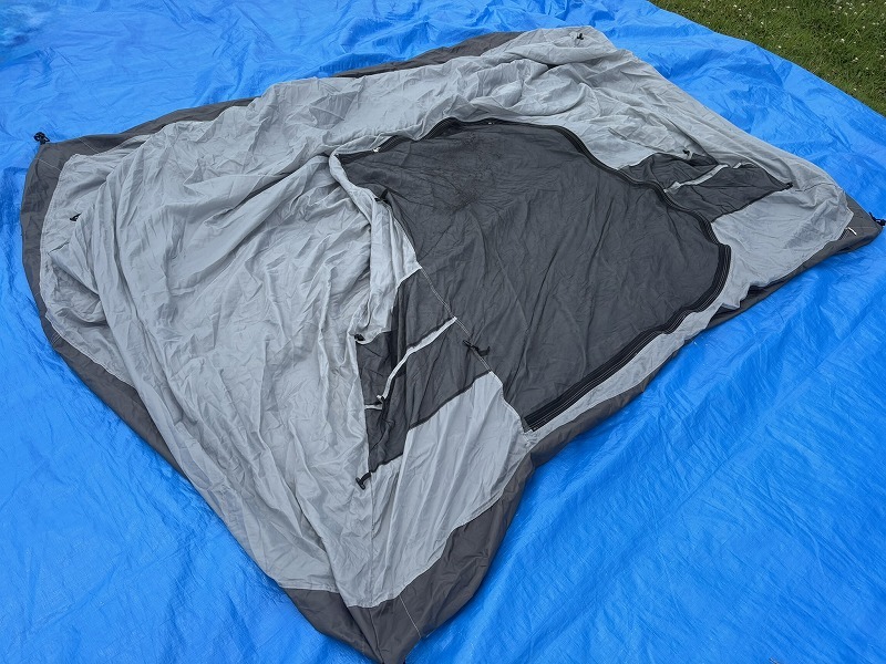 カタログ写真のようにテント入り口を跳ね上げるには、別途キャノピーポールが必要になります。