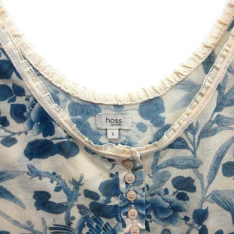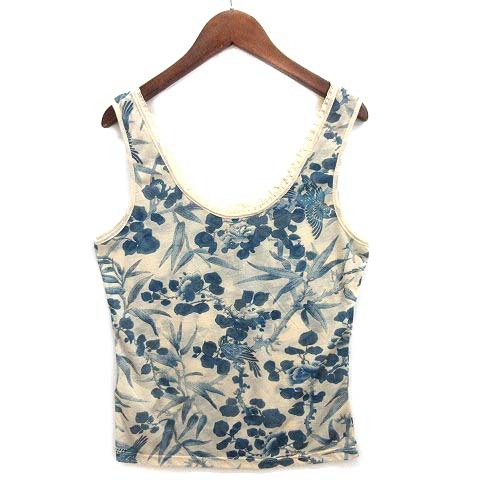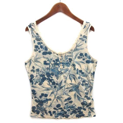 ホス hoss インディゴ プリント ヘンリーネック シアー キャミソール カットソー 中華風 鳥 花 レース S レディース