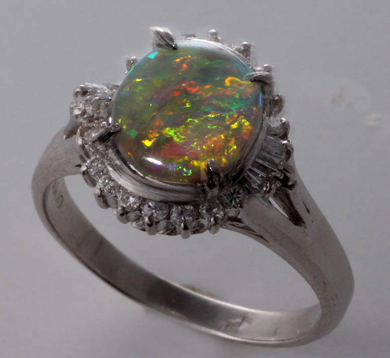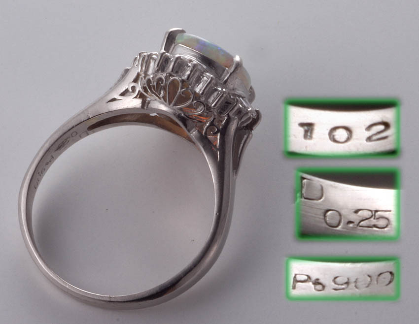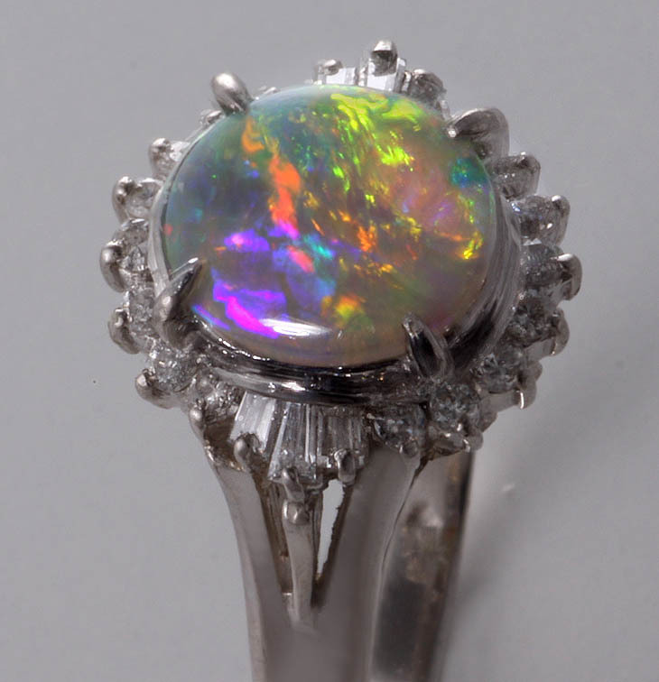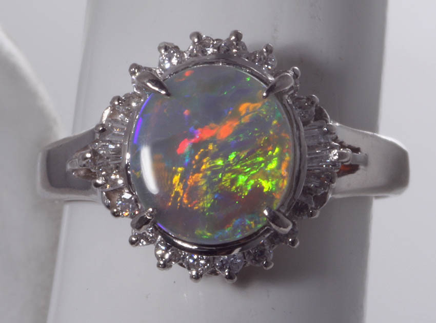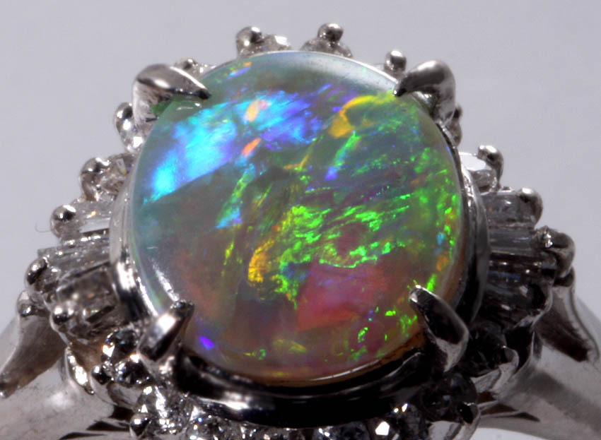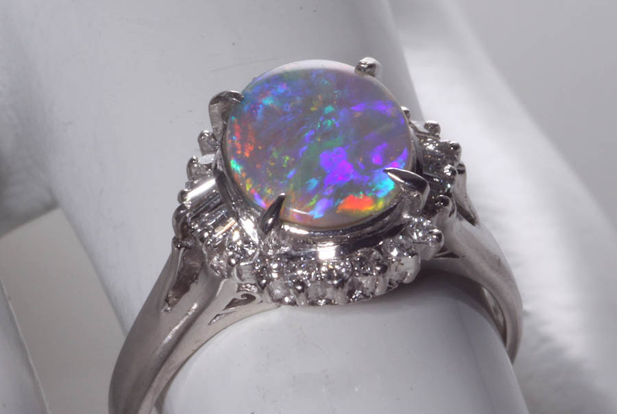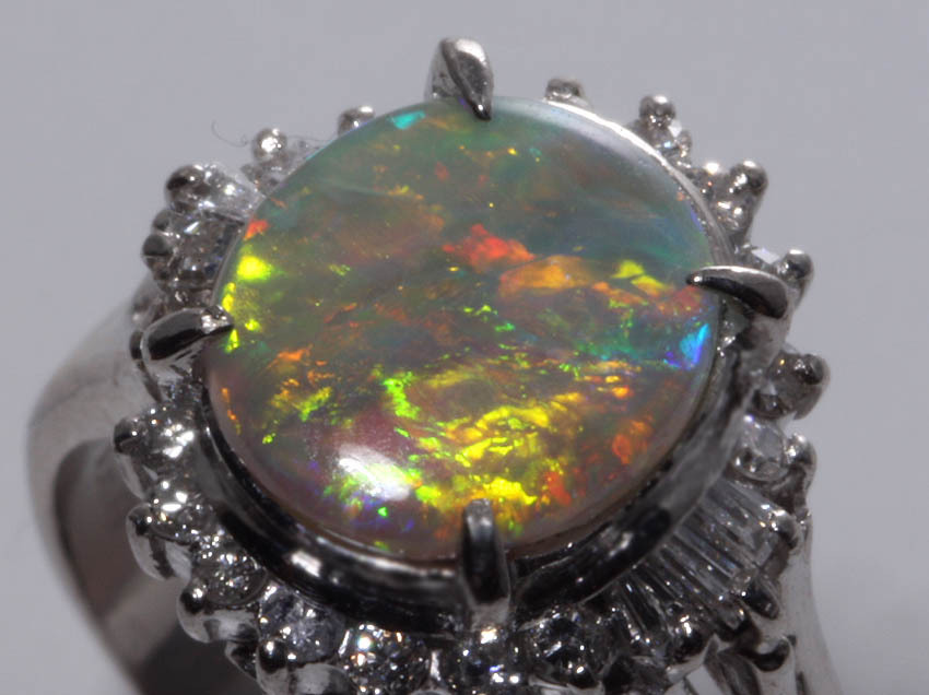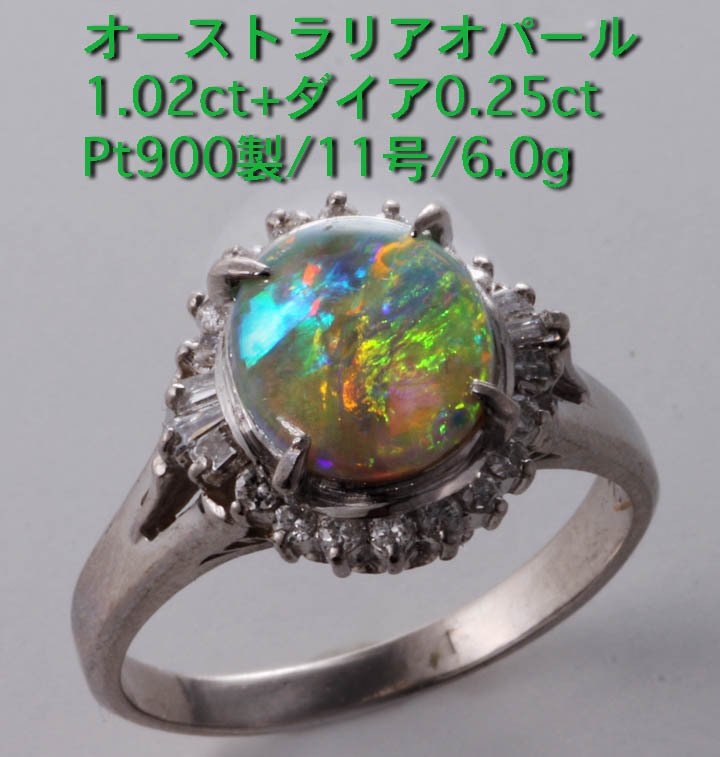 | マテリアル | 天然オパール1.02カラット(カラット刻印あり)、天然ダイア計0.25カラット(カラット刻印あり)、プラチナ900製 |