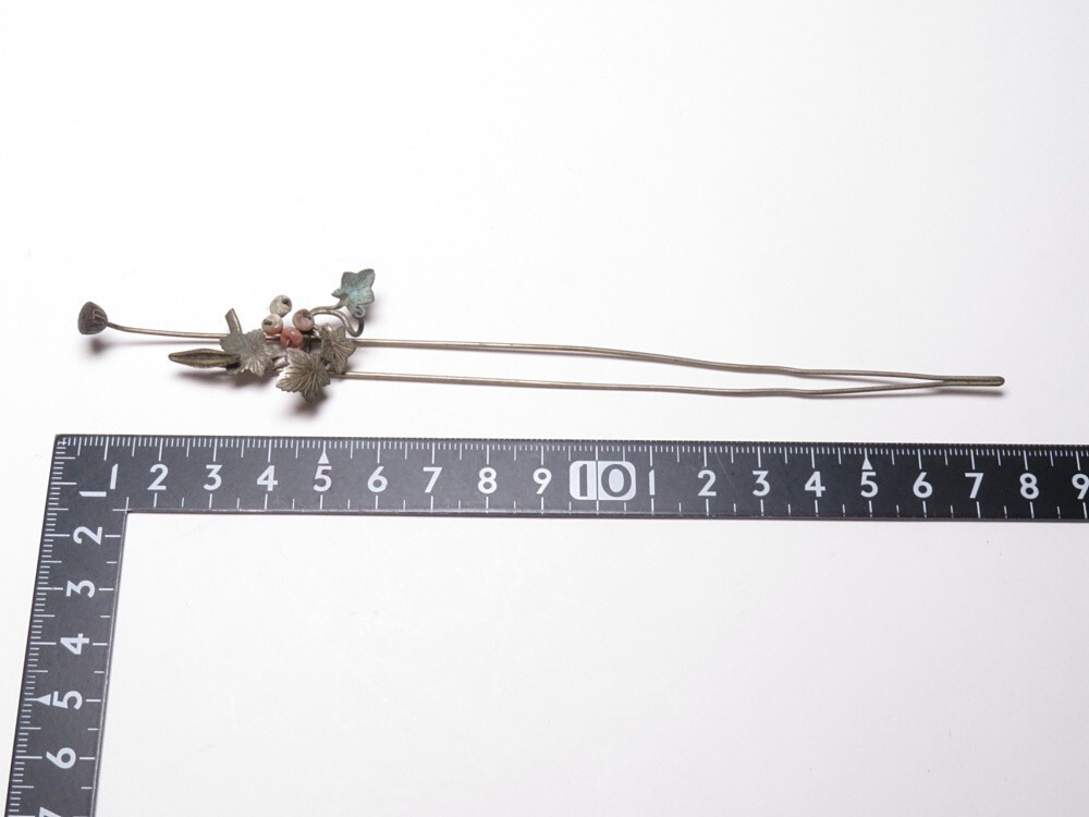 ●和装小物 (明治・大正・昭和) 銀製 蔦 彫金 かんざしになります。古い物ですが極力状態の良い作品を出品しておりますので是非ご覧ください。 【状態】 ●経年を考慮し状態はよいと思います。 【サイズ(約)】 ●全長17㎝ (素人寸法ですので、若干の誤差はお許し下さい) 【発送】 出張等により発送に一週間ほどお時間を頂戴する場合がございます。 【領収書】 領収書発行は致しておりません。 Yahoo!かんたん決済手続き完了時の確認画面をプリントアウトして領収書としてお使い下さい。 ※領収証として税務署に認められております。 ご了承のうえでのご参加をお願いいたします。以下の注意事項もご確認ください。 |