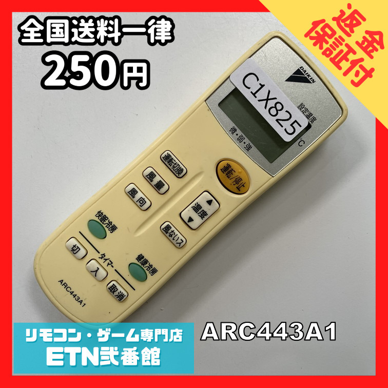 C1X825 【送料250円】エアコン リモコン / Daikin ダイキン ARC443A1 動作確認済み★即発送★ 冷房 暖房