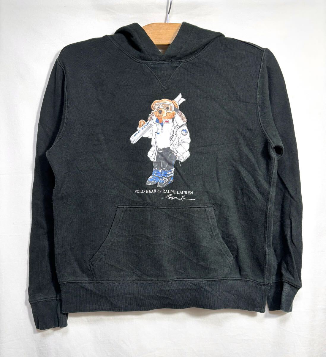 ■ 子供用 00s POLO RALPH LAUREN ラルフローレン ポロベア POLO SPORT ポロスポーツ パーカー フーディー 古着 KIDS ブラック アメカジ ■