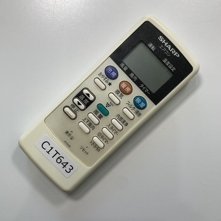 C1T643 【送料250円】エアコン リモコン / SHARP シャープ A734JB 動作確認済み★即発送★ 冷房 暖房