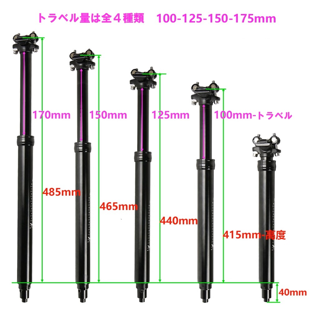 MicrOHERO 軽量 アルミ 全域無段階調整可 ワイヤーコントロール式ドロッパーシートポスト Φ31.6mm SP-26A (トラベル 150mm)