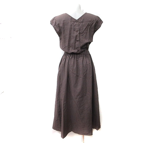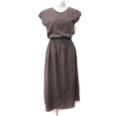 アーバンリサーチ サニーレーベル URBAN RESEARCH Sonny Label ワンピース ロング フレンチスリーブ 麻 リネン S 茶 ブラウン