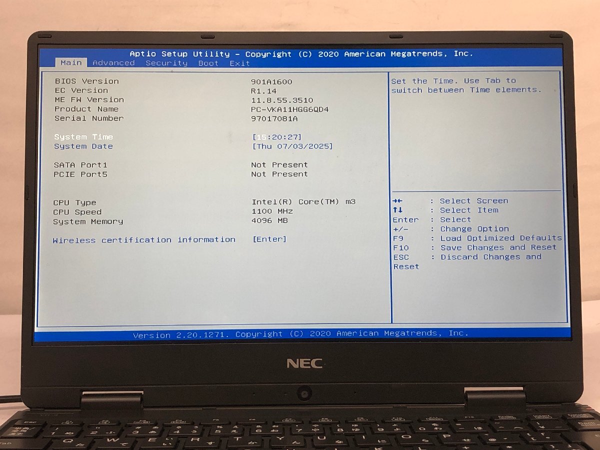 ジャンク/ NEC PC-VKA11HGG6QD4 Intel Core m3-8100Y メモリ4.1GB ストレージ無し 【K17446】