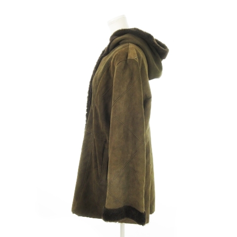 J-WHITE ムートンコート 羊革 本革 毛皮 ロング フーディ 切替 M 茶 ブラウン /MN6 ■GY42 レディース