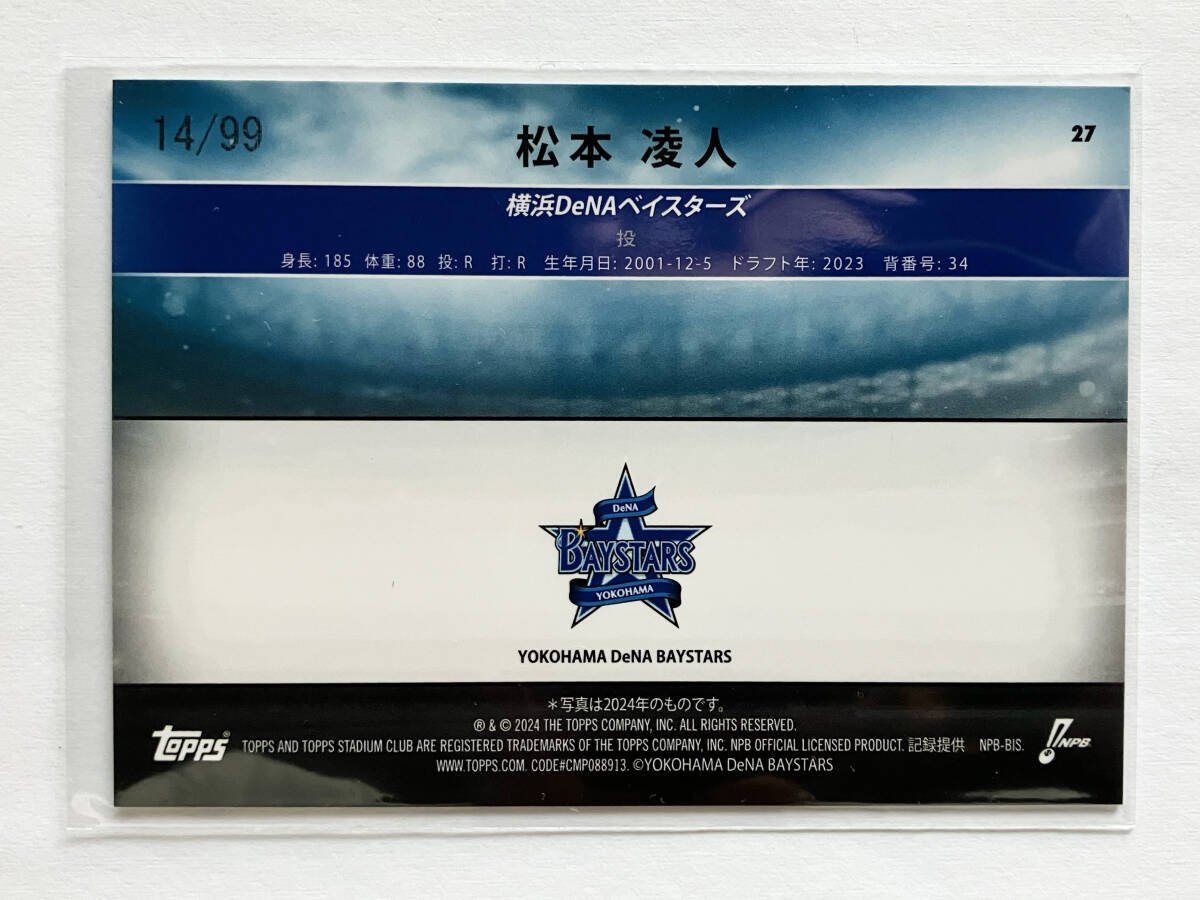 99枚限定!【松本凌人 / Ryoto Matsumoto】2024 TOPPS NPB STADIUM CLUB ★ 横浜DeNAベイスターズ Yokohama DeNA Baystars ★ RC ルーキー