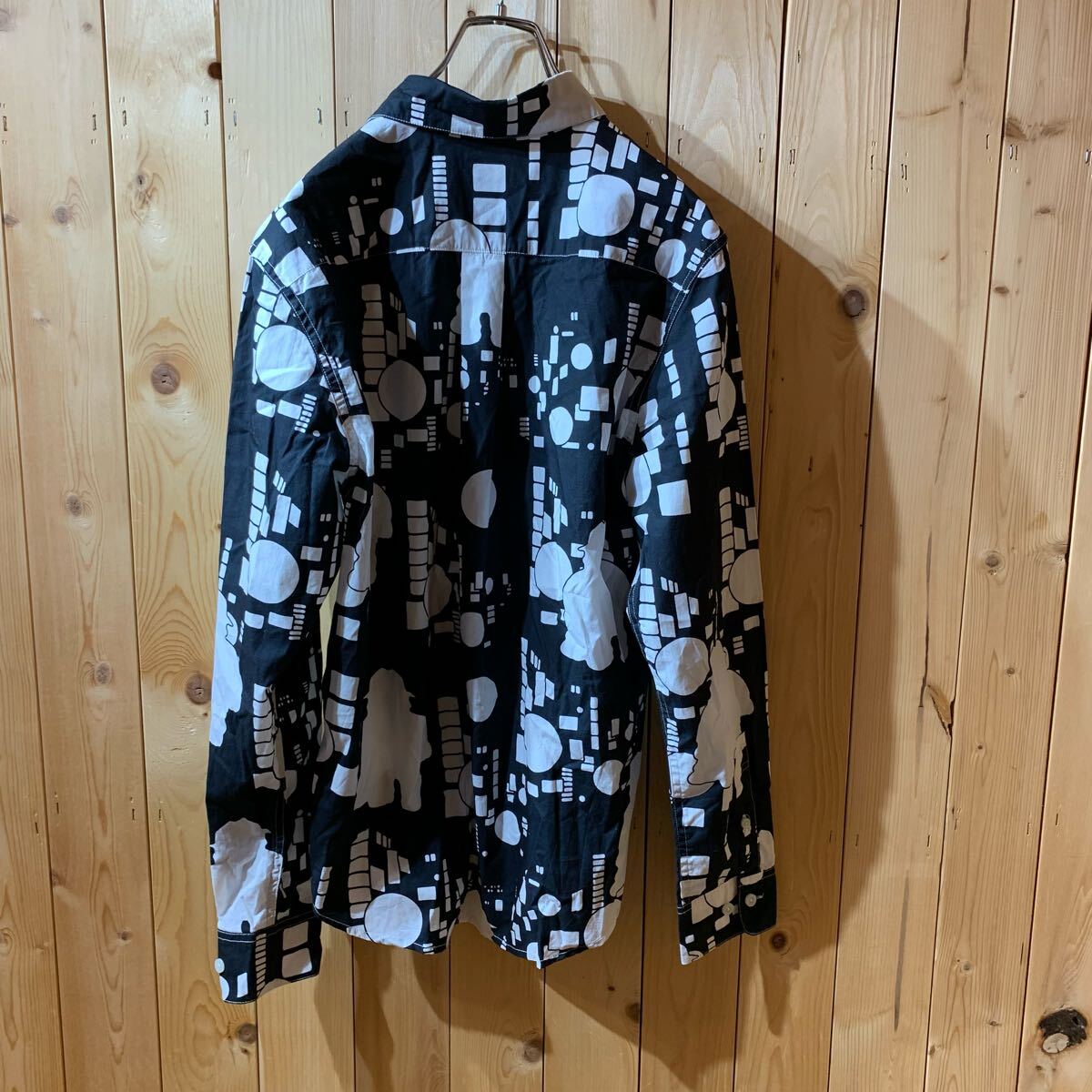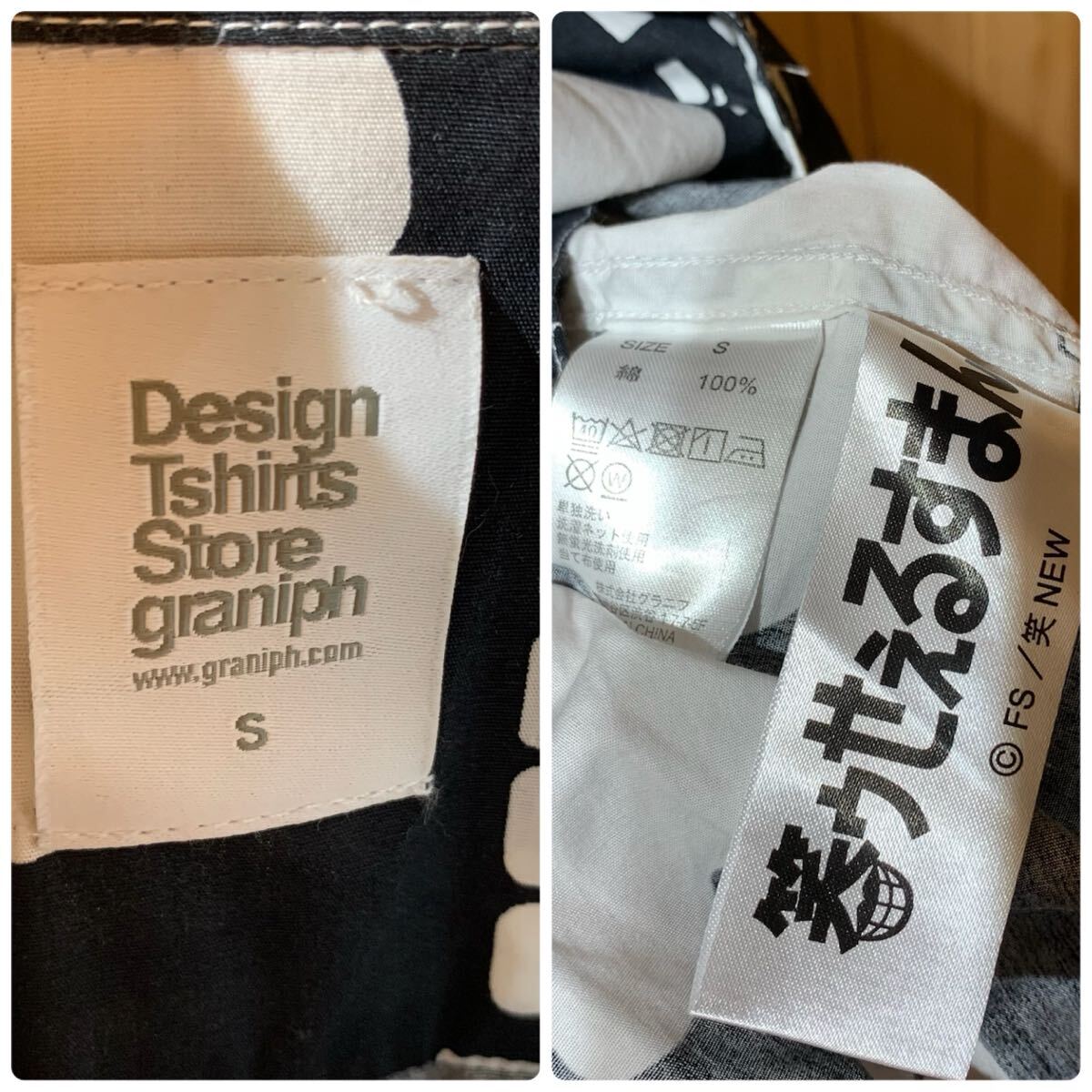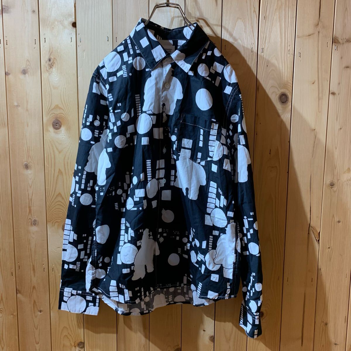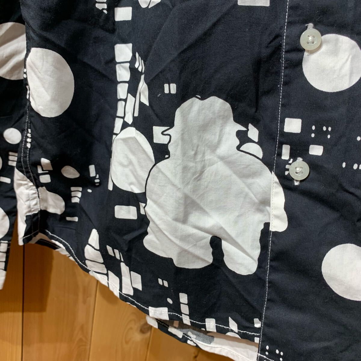 [YUK483]グラニフ 笑ウせぇるすまん 総柄 長袖シャツ 黒 白 S