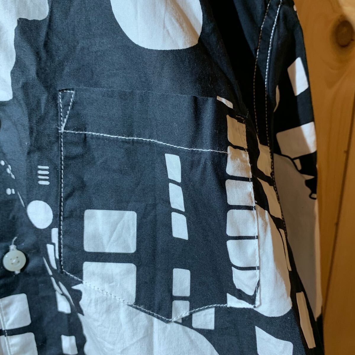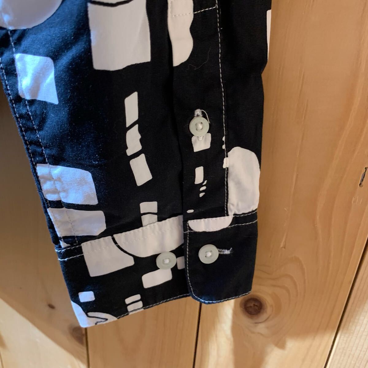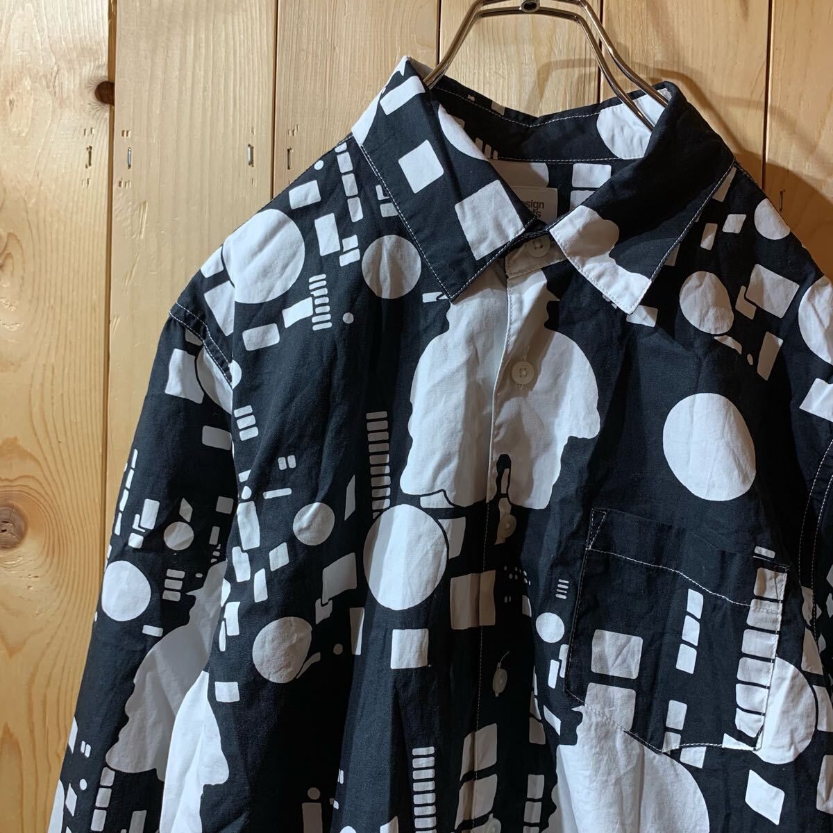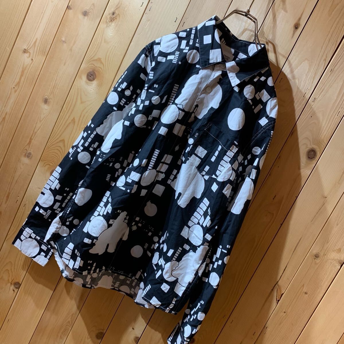 [YUK483]グラニフ 笑ウせぇるすまん 総柄 長袖シャツ 黒 白 S