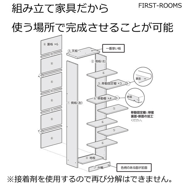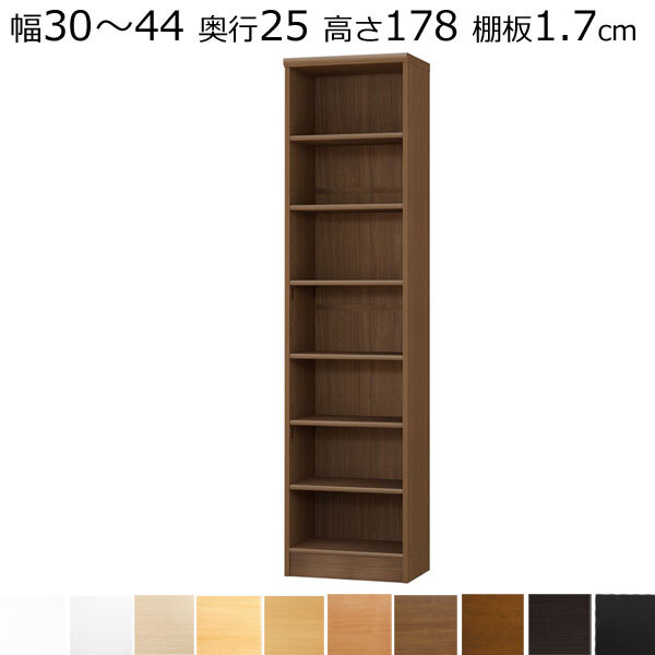 幅15~70cm(棚板タフ2.5cmは90cm)まで1cm単位でオーダーメイド、本棚です。高さ49・60・70・80・88・117・135・150・178・211cmの10サイズ、奥行きは19・25・31・40・46cmのサイズ、カラーは木目調ナチュラル・木目調ブラウン・つや消しアイボリーホワイト・つや消しブラック色など12色。主材はプリント紙化粧繊維板、生産国 はJAPAN、お客様組み立て商品です。プラスドライバーで組み立てられます。特注のため、お届けまで10~14日かかります。●送料込ですが、北海道・沖縄・離島は別途送料がかかります。お支払い方法は代引き以外をお選びください