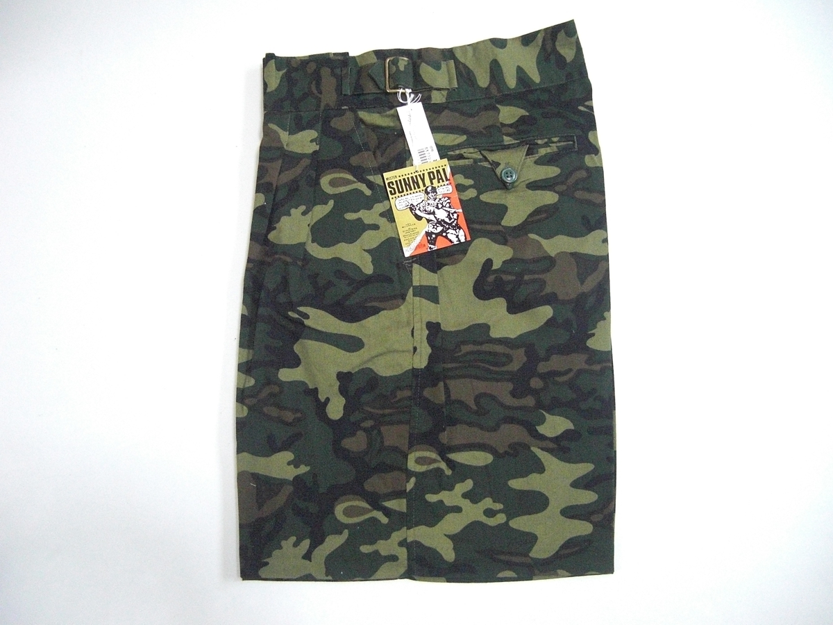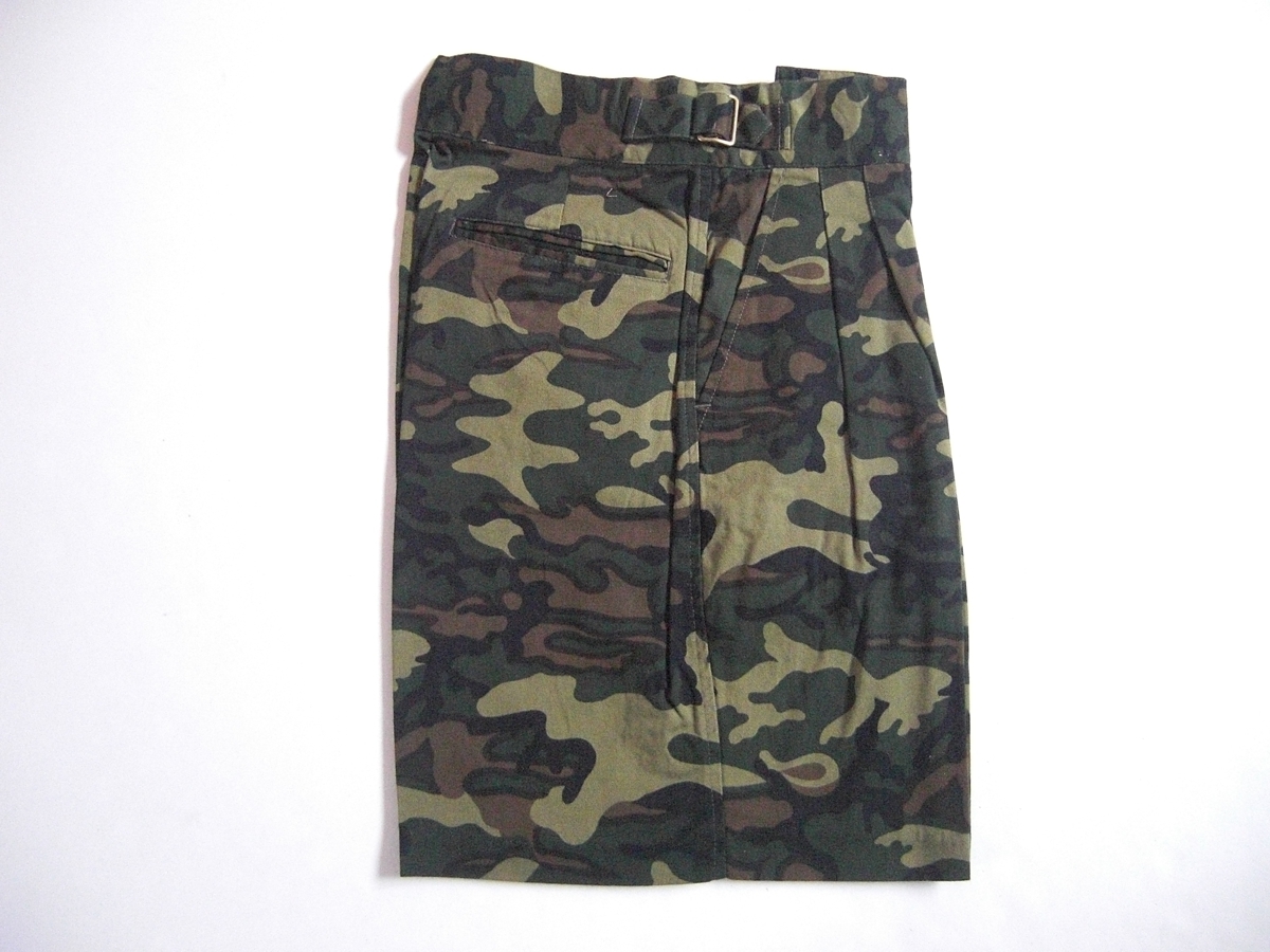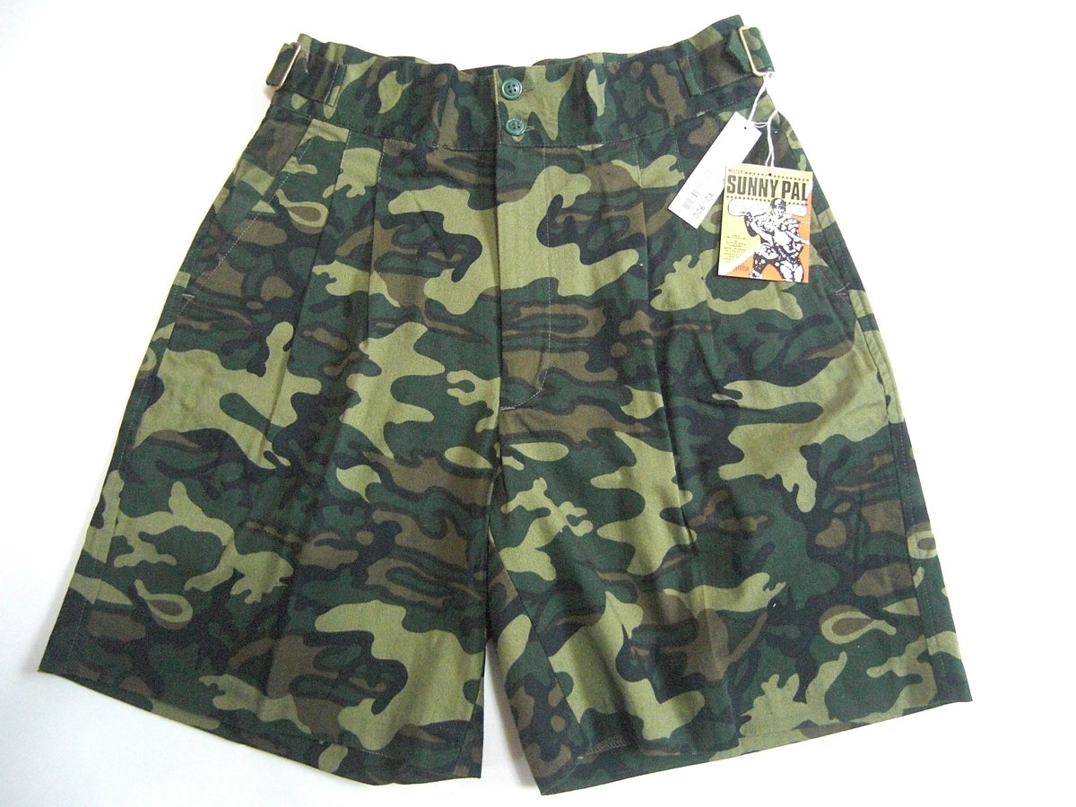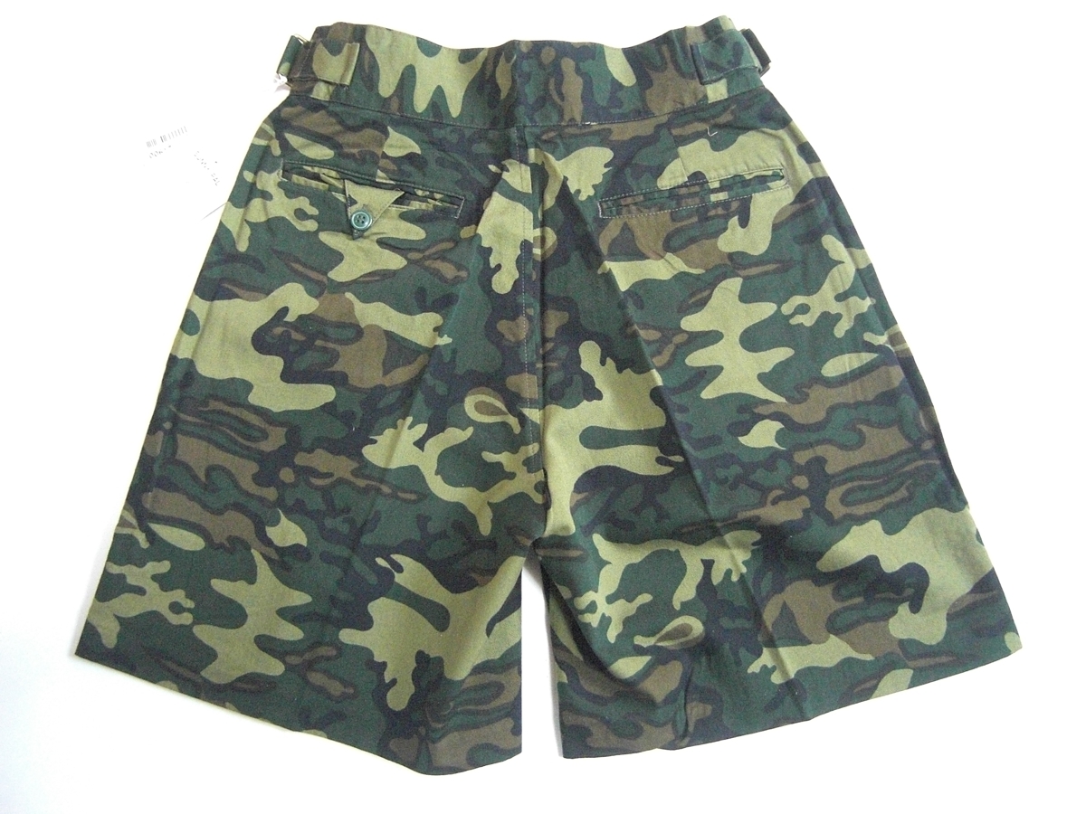 ♪新古品♪621-1 迷彩柄ハーフパンツ (M) 2タック ★緑系★ アジャスター付ベルト 前ファスナー カモフラ