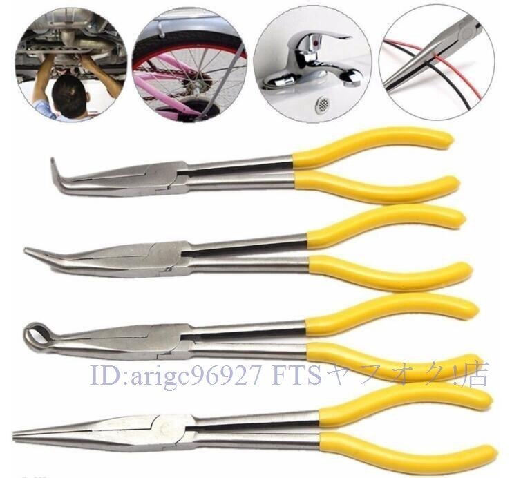 B31884個セット 11インチ エクストラ ロングノーズ プライヤー セット ストレート メカニック 機器 ハンド ツール 金属加工 DIY