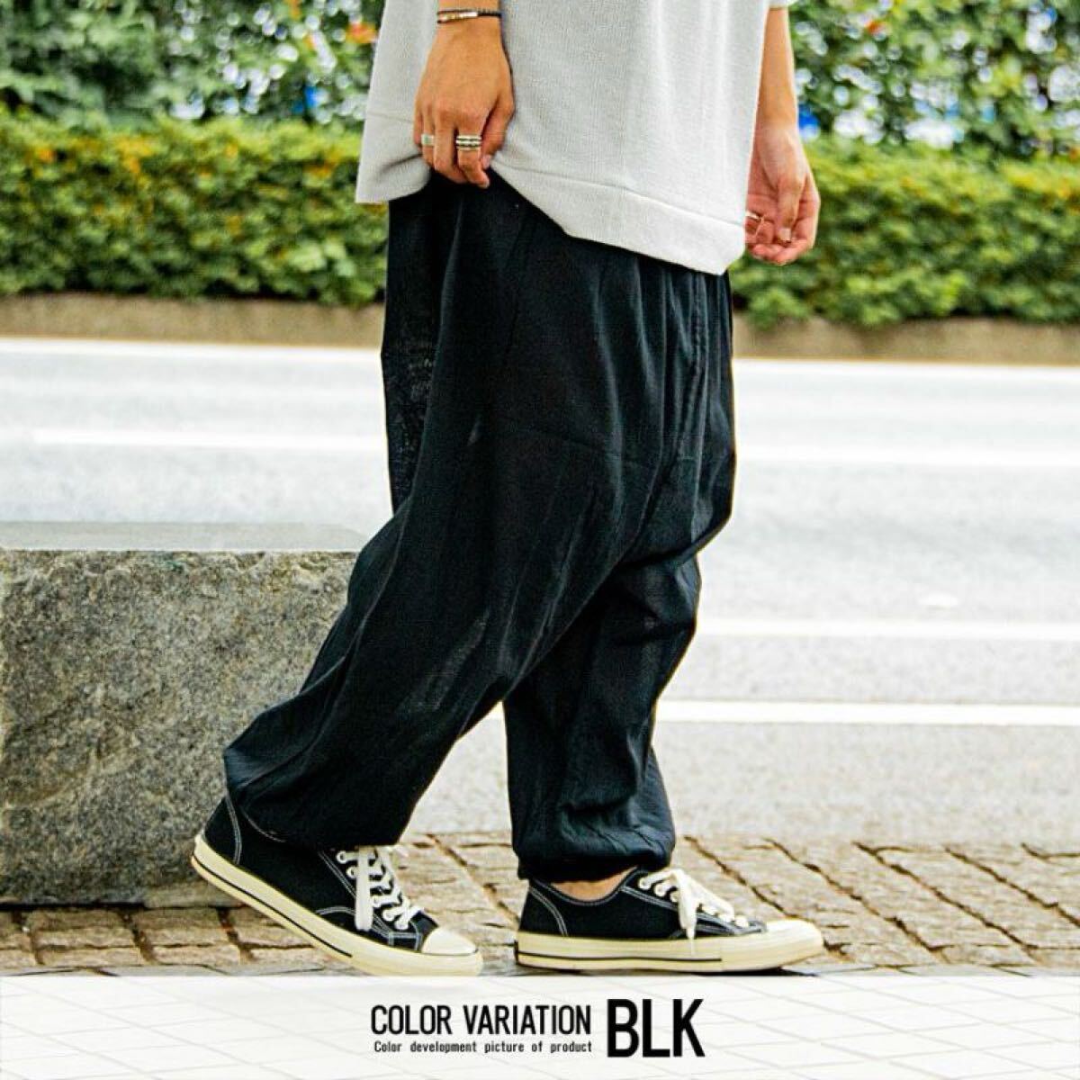 着心地も楽チンで涼しげなゆったりサルエルパンツです。