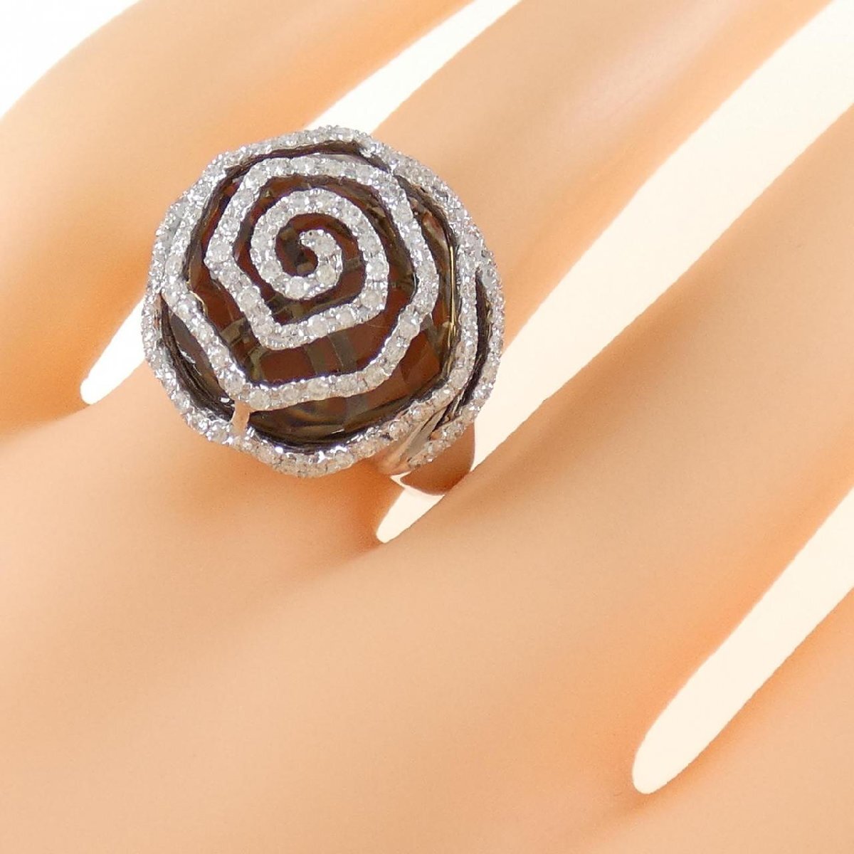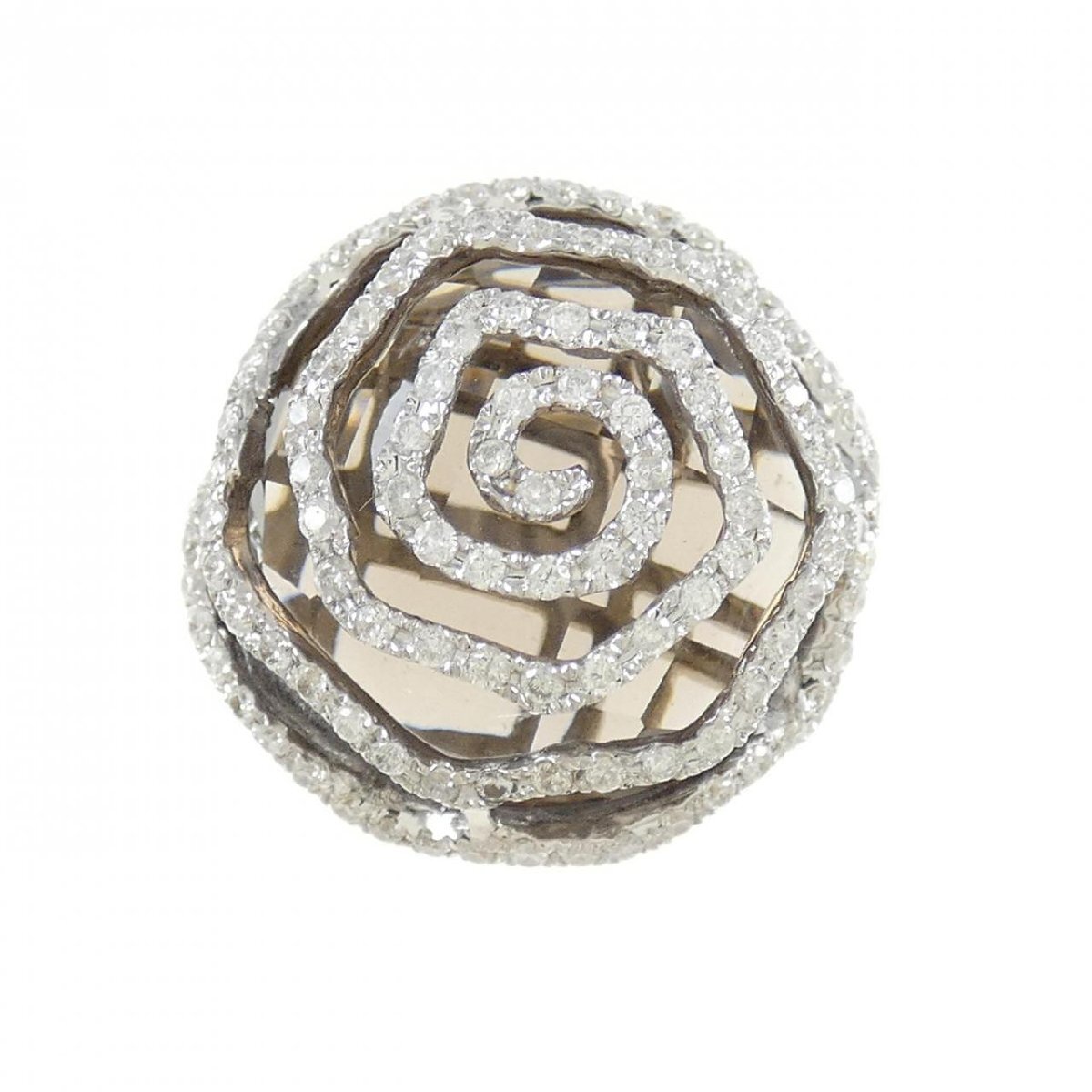 落ち着いた色合いのスモーキークオーツの上に煌めくダイヤモンドを渦を巻くようにセッティング。立体的でボリューム感のあるデザインです。
