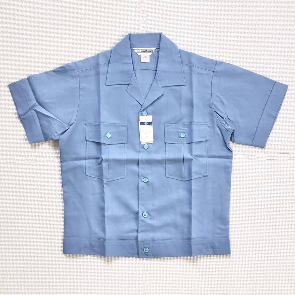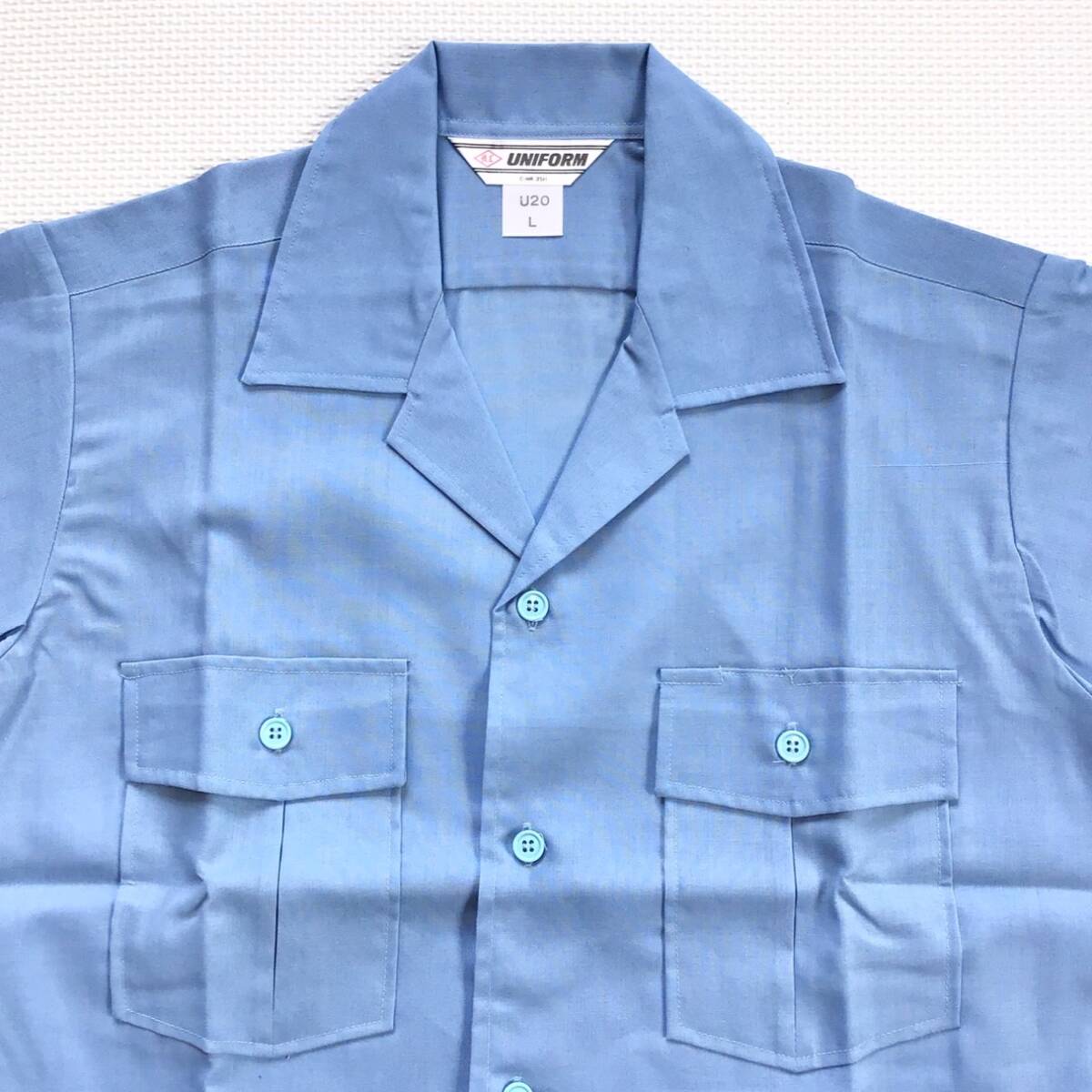 (在庫処分) 新品未使用品 旭蝶 [U20] 半袖シャツ サイズ L /日本製/サックス/麻混/春夏/薄手/作業着/作業服/ワークウェア/ユニフォーム