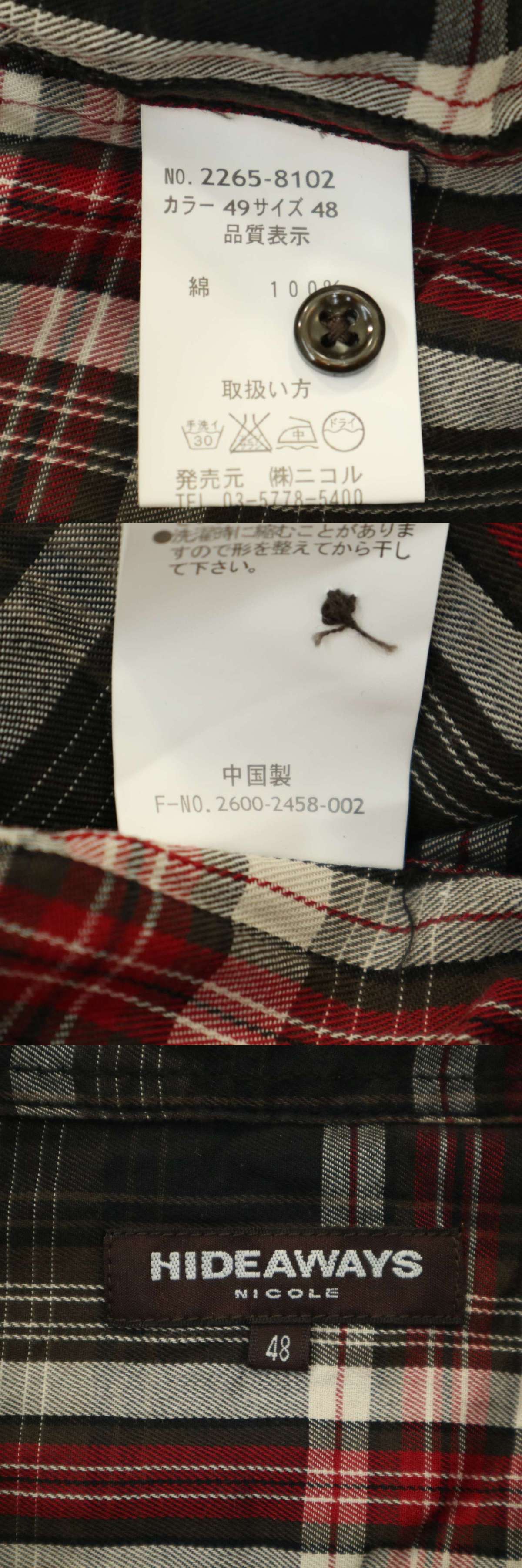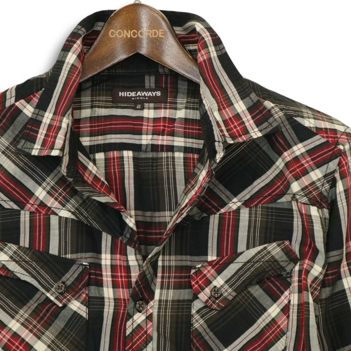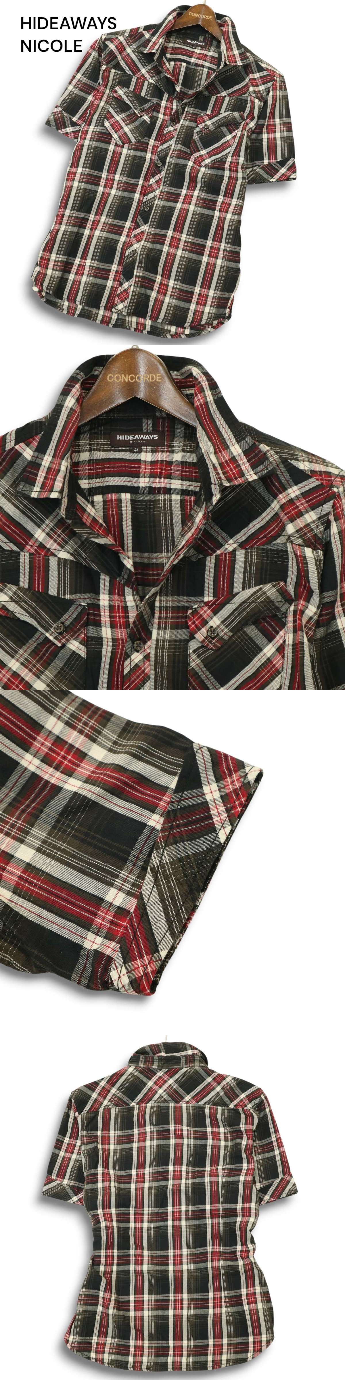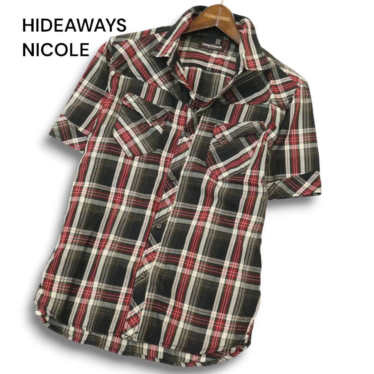 HIDEAWAYS NICOLE ハイダウェイ ニコル 春夏★ 半袖 ウエスタン風 ワーク チェック シャツ Sz.48 メンズ