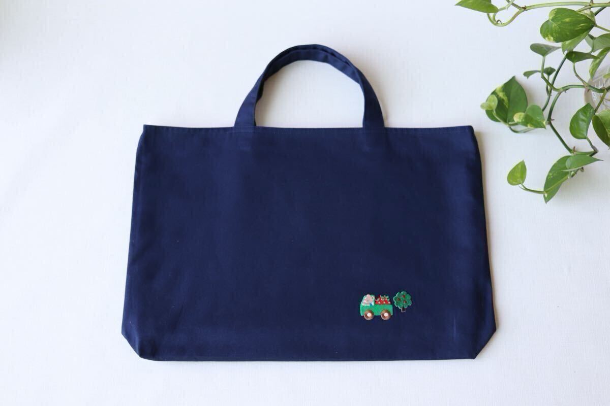 落ち着いたネイビーに、さりげないワンポイントを添えたシンプルなデザイン。