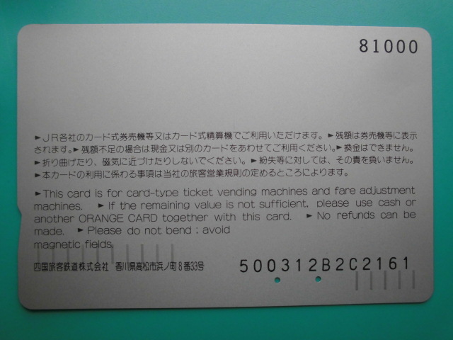 JR四 オレカ 使用済 8000系 特急 しおかぜ 【送料無料】