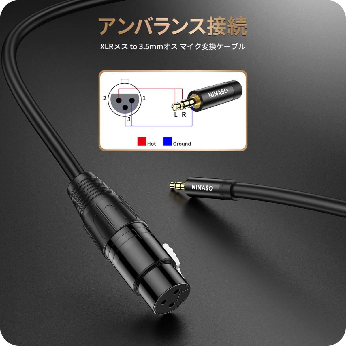 3.5mm to xlr NIMASO 3.5mm (オス) to XLR (メス) 変換ケーブル アンバランス接続 マイクケーブル xlr 3.5mm 変換 ケーブル (3m) オス-メス NCA22L637