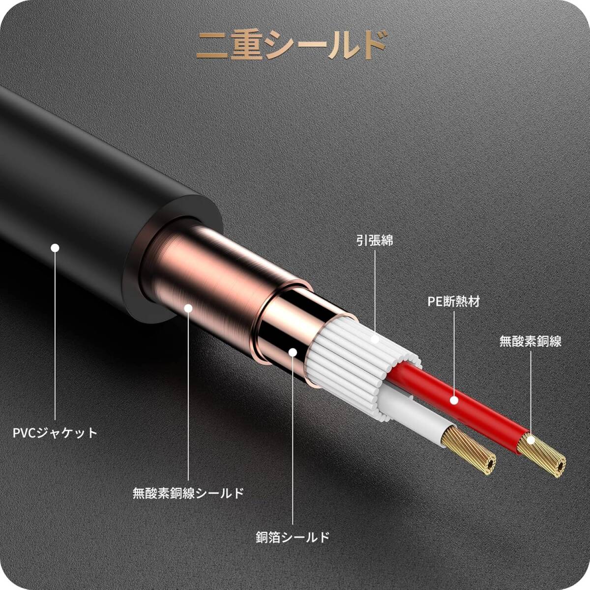 【優れた音質】純銅導体、高品質金メッキプラグ、純銅編組とアルミニウム箔による二重シールド。優れた抗干渉機能により、音声信号をダメージから守り、超クリアなロスレス音声出力を実現します。