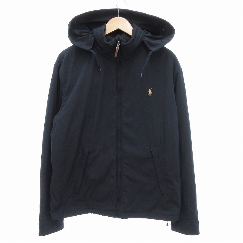 ポロ ラルフローレン POLO RALPH LAUREN ジップアップブルゾン パーカー フード ホースロゴ刺繍 L ネイビー /JS ■GY19 メンズ