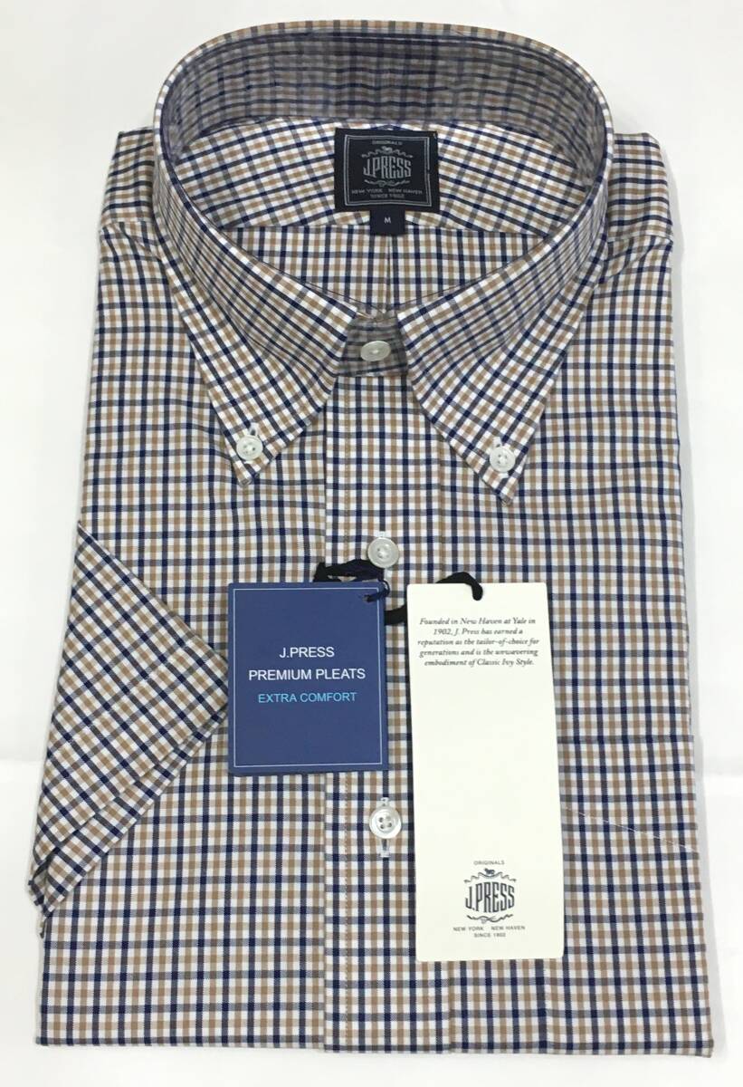 J.PRESS  形態安定PLEMIUM PLEATS 半袖ボタンダウンシャツ 綿100 M ジェイプレス オンワード 定価14.300円