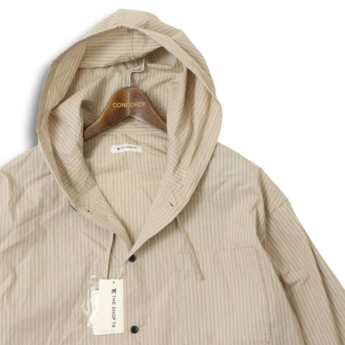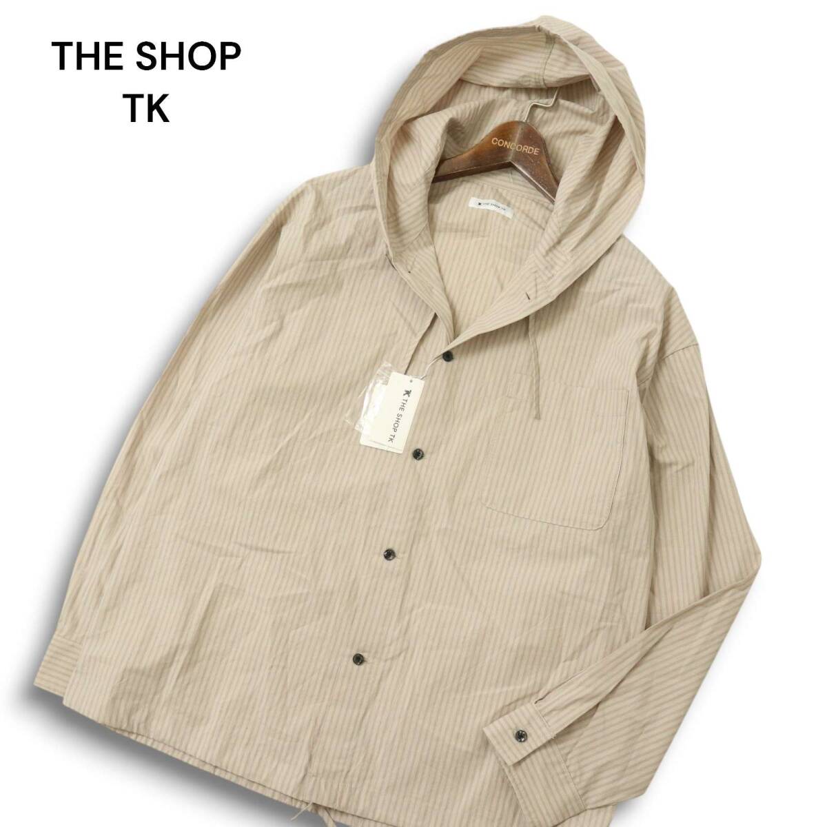【新品 未使用】 THE SHOP TK タケオキクチ 通年★ 長袖 ストライプ フード シャツ パーカー Sz.L メンズ